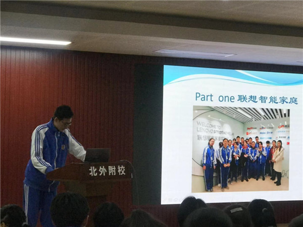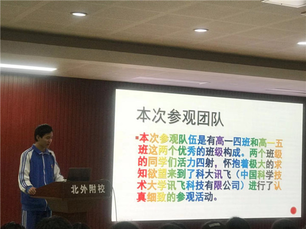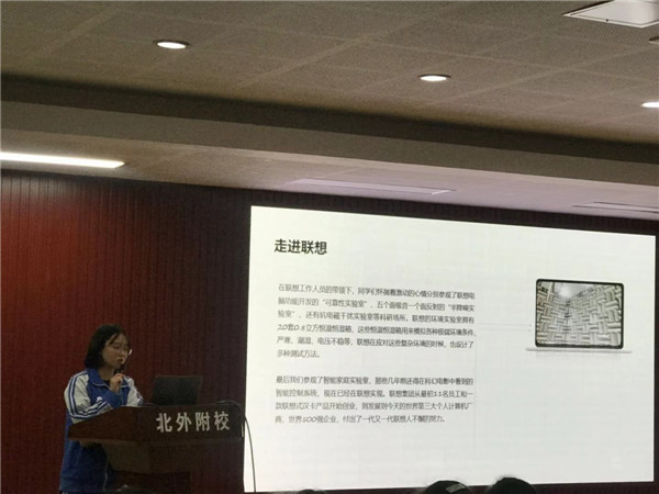 樊睿、罗雨萱、张子航、曾庆嘉、帅贝贝和徐沅六位同学,分别就参加联想集团、科大讯飞的秋季社会实践活动感受进行了分享,大家畅谈所见所闻,提到科技对社会发展所起的重大作用,自勉和倡议为了未来的发展而努力学习、了解更多科技知识,在座的同学都受到了极大鼓舞。