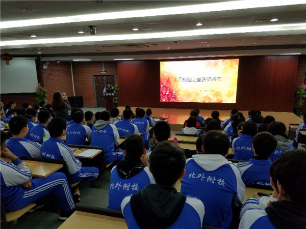 11月14日中午,高一年级全体师生在二阶会议室召开期中总结会,魏宇晗老师主持会议。