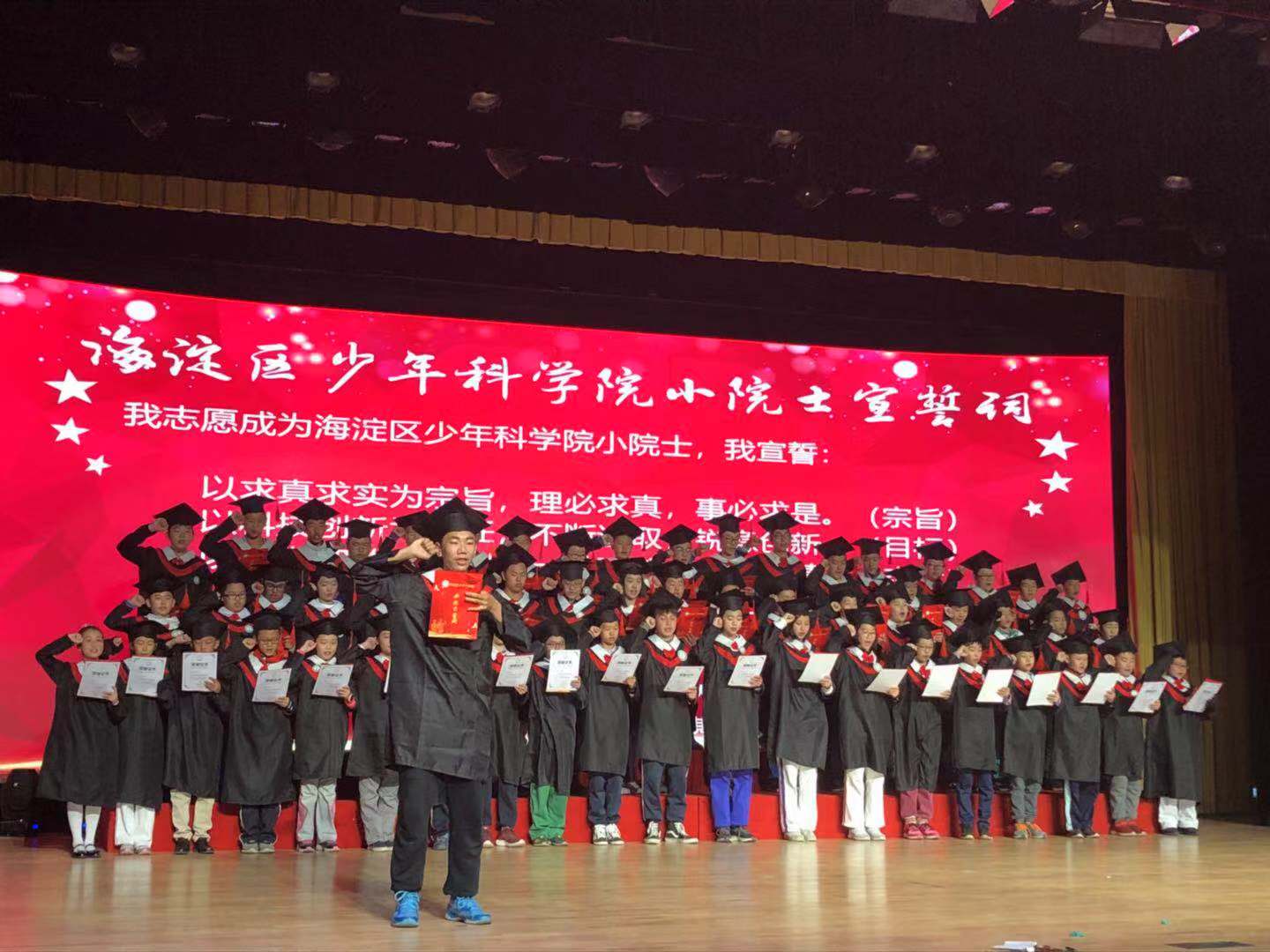 11月16日,2018年海淀区中小学生科技节暨海淀区少年科学院科技成果巡展活动在北京市一零一中学举行开幕式。我校OM研究所小院士智小泉,候补小院士杜佳晔及学生代表张亦冲在于颖老师、李艳颖老师的带领下参加活动。