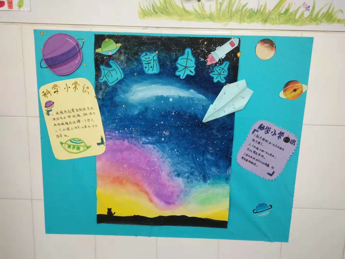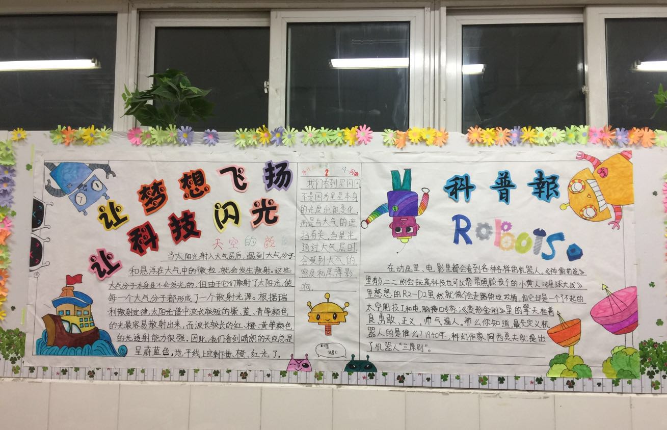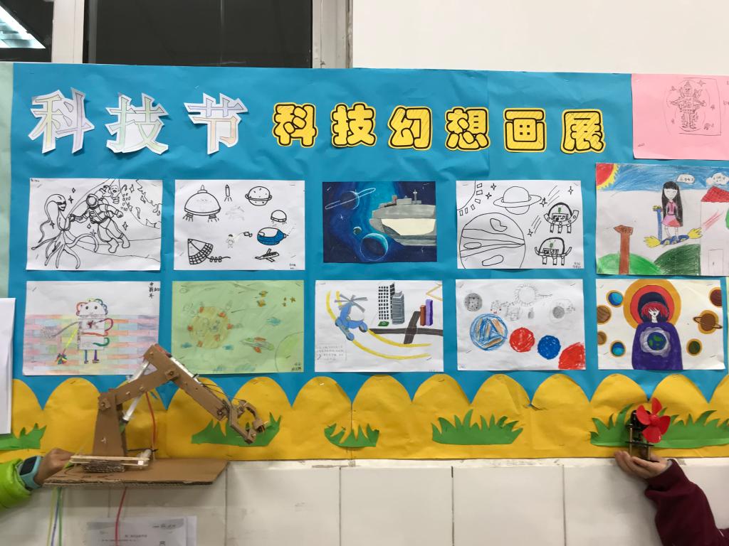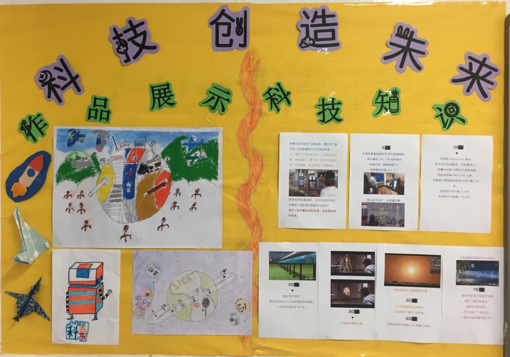 在我校一年一度的科技节来临之际,近来我们五年级组各班开展了以“科技改变生活,成就未来希望”为主题的科技创作制作、科技幻想绘画等展示活动。各班同学们热情似火,开启“头脑风暴”,纷纷投入到各项活动中来,于本周各班级集中进行了专题板报展示的活动。