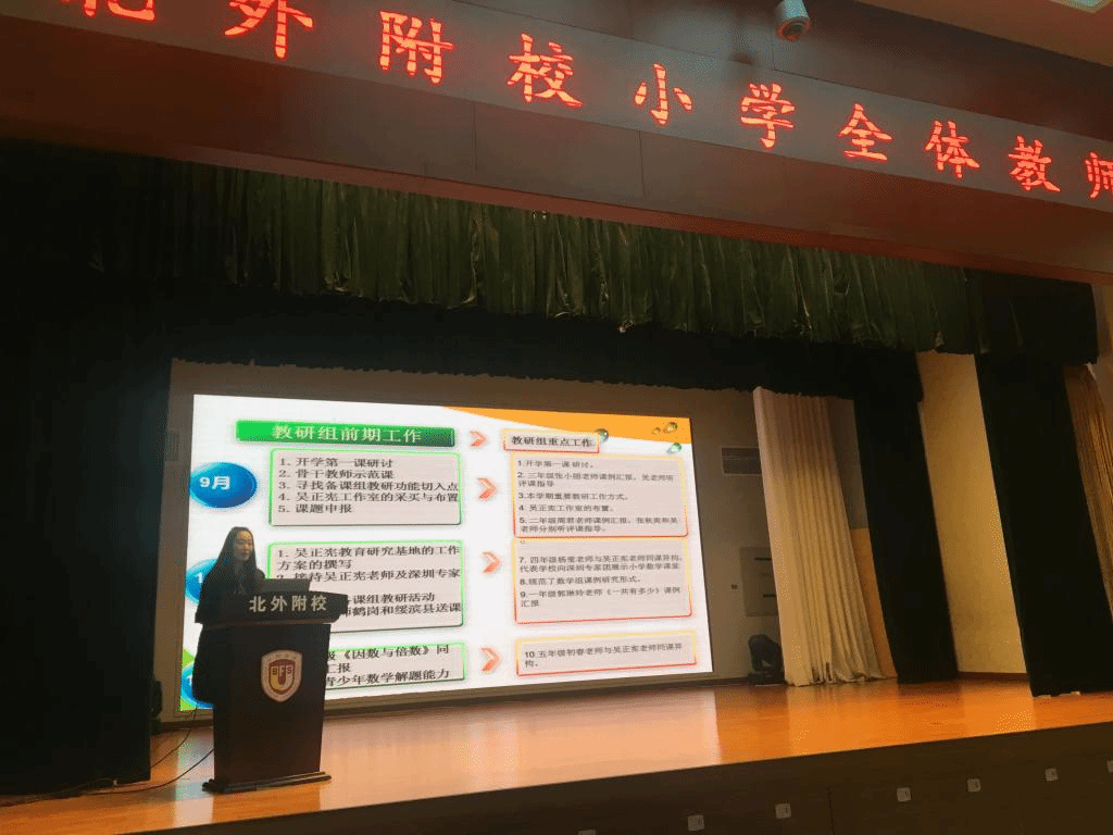 此外,各教研组长还就开学以来的教研工作以及取得的优异成绩进行了详细的汇报。如语文组的“邀请语文教学专家崔峦教授来校指导”,数学组的“邀请特级教师吴正宪指导同课异构”,英语组的“漫游书展”“动物狂欢阅读日”“畅游花境”“秋日诗会”等。在肯定前期工作所取得的成绩的同时,三位教研组长还给大家分享了下半学期的工作思路。