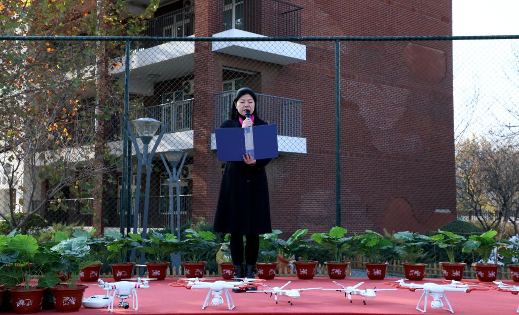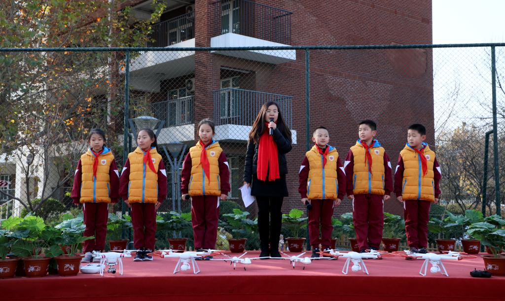 三年级学生进行了以科技节开幕为主题的国旗下讲话,并列举了我校在科技方面取得的各项优异成绩。讲话的最后,随着孩子们的指引,一架航空模型飞上天空,它时而低空俯冲到孩子们头顶,时而欢快地飞上高空表演盘旋翻转,孩子们冲它欢呼、招手,阵阵欢笑声和尖叫声响彻在操场上空。