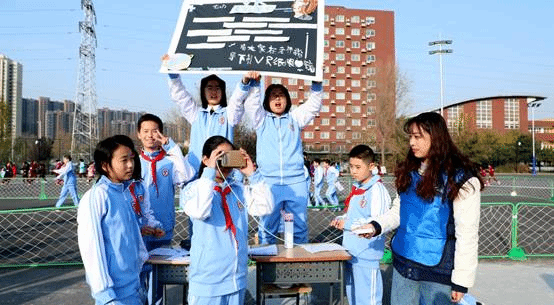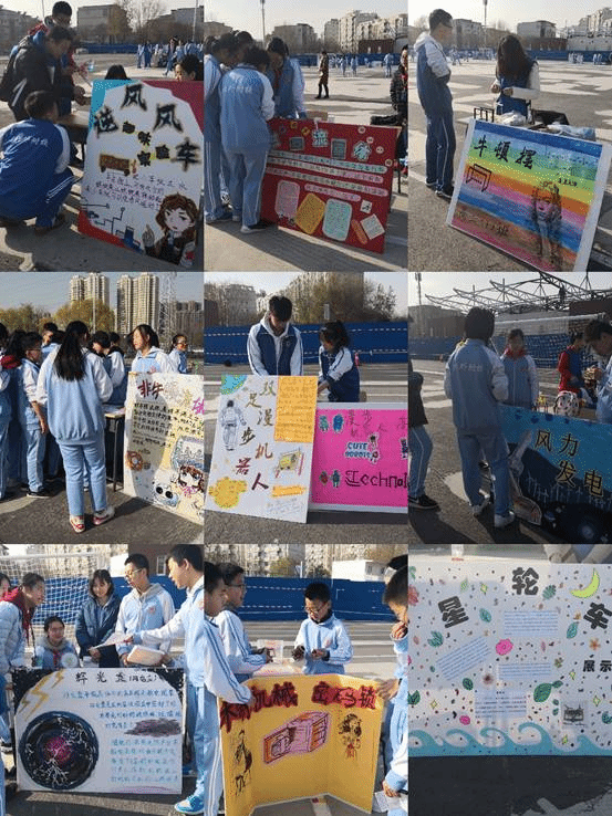 中学28个班级提前抽签,各领取一个项目并制作成课程项目介绍海报,在活动开始前各派4名学生志愿者接受科学导师的培训。活动时由各班志愿者为体验者进行项目介绍和演示。从中午1点开始,初一、初二、高一、高二年级的学生陆续进入学校操场进行课程体验。活动现场学生的热情参与、展露出的灿烂笑脸无不告诉我们,筹备小组的活动项目设计达到了预期目的。
