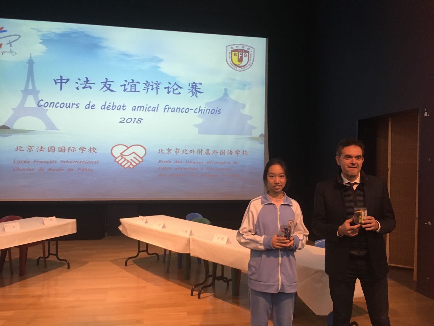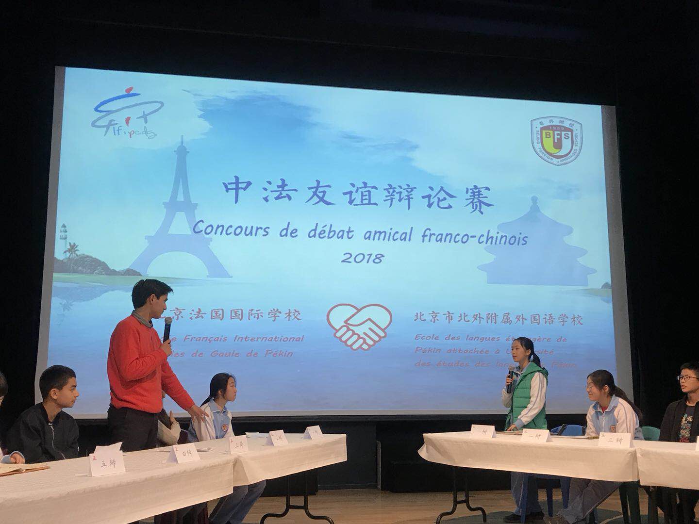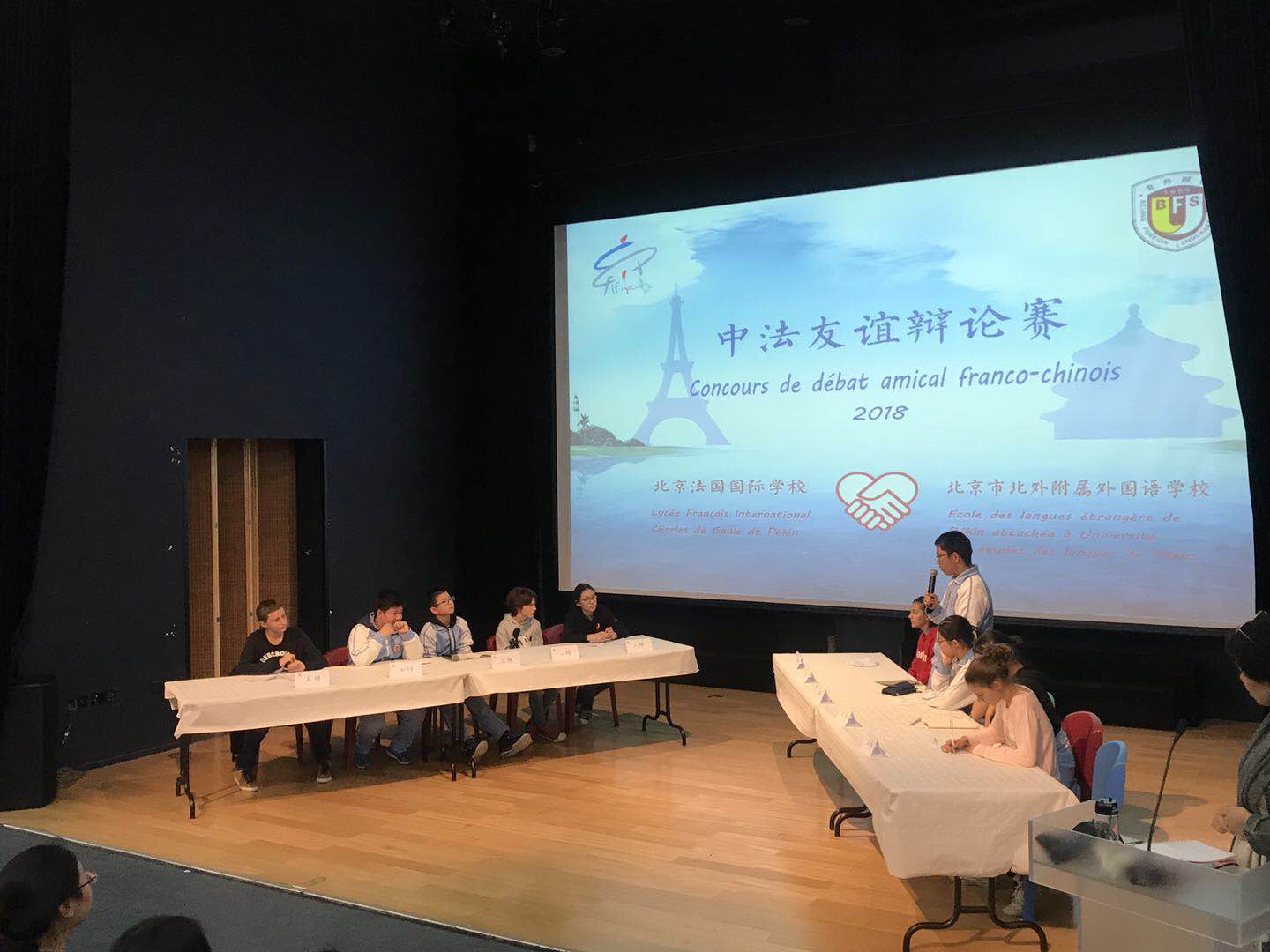 这次中法友谊辩论赛不仅提高了学生法语学习的兴趣和口语表达能力,还提高了学生的逻辑思考能力,同时增进了北外附校和北京法国国际学校两校师生之间的友谊。