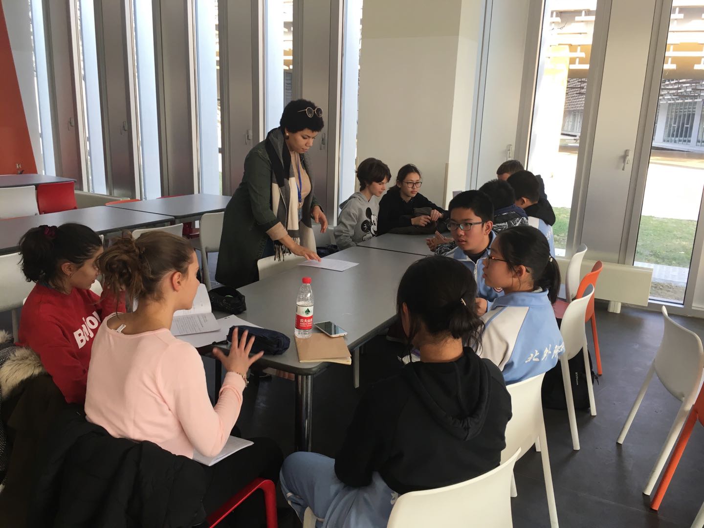 为了提高北外附校法语学生的学习兴趣,提高法语口语表达能力,增强学生对于身边热点问题的关注和思考能力,增进学生与法国的交流与互动,11月19日下午,我校初二年级全体法语学生在法语老师和外教Mélissa的带领下,到法国国际学校进行交流学习。我校选派的十名法语学生还与该校学习中文的学生开展了中法友谊辩论赛。