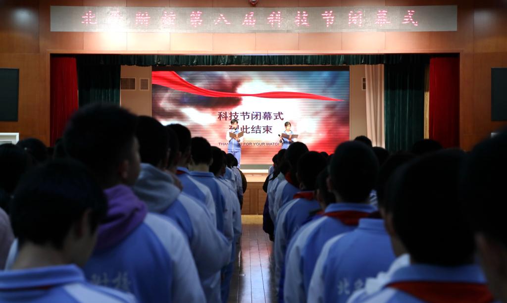 副校长高雁鸣上台致闭幕词,他充分肯定了本届科技节在普及科学知识,弘扬科学精神,培养创新意识和实践能力,提高科学素养等方面起到的积极作用,对为科技节顺利完成付出辛勤劳动的师生表达了感谢。他号召每一个想有所作为的年轻人都应该树立科学理想,勇于创新实践,做一个既有科学态度和方法,又具有实践、创新能力的一代新人,希望同学们可以进一步认识到科技知识在科技探究中的作用与价值,更加积极、主动地投入到科学知识的学习和技术探究的活动中,做到用科学的态度对待学习,用科学的方法指导学习,不断完善自己,努力使自己成长为有道德、有能力、有责任、有情怀的杰出青少年。