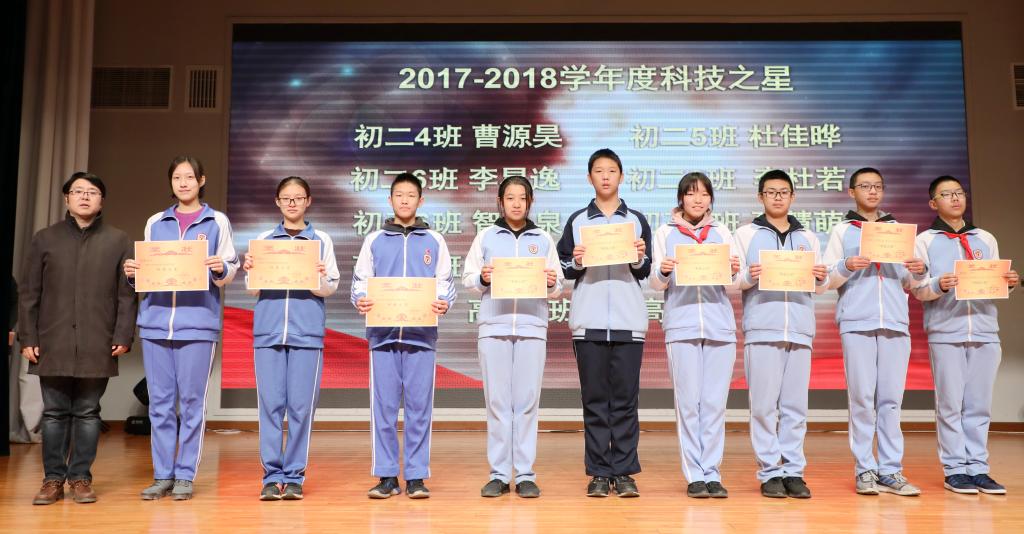 随后,校长助理杨磊、王静分别为科技之星、科技节优秀活动班集体、最喜爱的科技课程体验项目海报、科技节黑板报评比等项目的获奖学生代表颁奖。