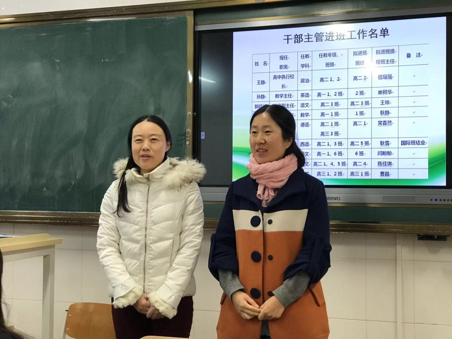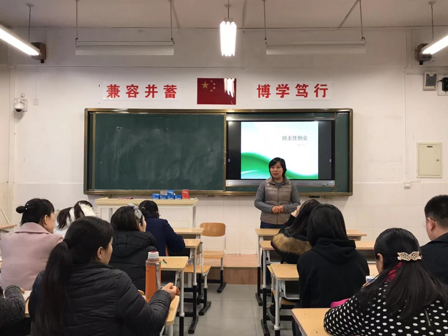 11月29日上午7:35,本周班主任例会于505教室召开。会议由高中教导处副主任郭晓红主持,高中执行校长王静和全体班主任、年级部主任参会。