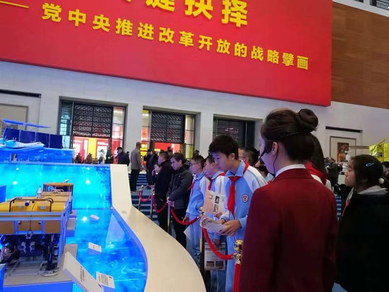 清早7点半,初二年级师生在校长助理杨磊和年级主任王莉的带领下,乘大巴车前往国博。走进国家博物馆,迎面而来的大屏幕上放映着《伟大的变革》纪录片,这个纪录片讲述了中国改革开放40周年以来的变化。随后,博物馆的讲解员为大家介绍了此次展览的“伟大的变革”、“壮美篇章”、“关键抉择”、“历史巨变”、“大国气象”、“面向未来”六个部分。通过讲解员精彩的讲解,同学们充分了解了中国改革开放的进程和改革开放四十周年的科技成果。其中,可上九天揽月的“东方红一号”和可下五洋捉鳖的“蛟龙号”吸引了同学们的眼球。此次参观活动在同学们的阵阵赞叹声中结束。