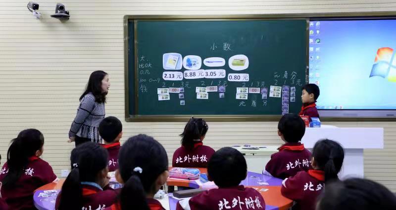 数学教师柏庆杰执教的《认识小数》一课,让学生从已有的经验出发来学习数学。以“学生为主体、教师为主导”引导学生经历知识的观察、发现、应用的过程,结合买文具情境,让学生在合作交流中学习,初步理解小数的意义,认识小数的特征,从实际生活经验了解小数的重要意义。王晓晨老师执教的《摸球游戏》,以游戏导入激发学生们的学习兴趣,以小组合作的形式展开教学,让学生经历“猜测----实验----分析实验数据----验证”的全过程,在教学中培养学生们的统计意识和合作意识,渗入猜想----验证的数学思想。同时,课堂活动以学生为中心,采用生生对话的课堂模式,充分体现学生的主体性。