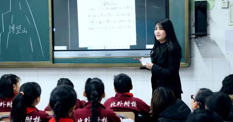 语文学科由万响老师和杨雅惠老师分别执教《望天门山》和《出塞》两首经典古诗文。万响老师以甲骨文文字导入诗题,“因形求义”,引导学生观察字形,运用吟诵、师生对读等多种方式朗读古诗,以读促悟,并联系背景指导学生理解“眼前所见之景皆因心中所悟之情”。杨雅惠老师借助多媒体手段,营造古战场氛围,引领学生把握诗歌的含义,想象诗中所描绘的意境,体会诗人所表达的思想感情,在赏析品读中深入了解了边塞诗的特点,培养学生自学古诗的能力。