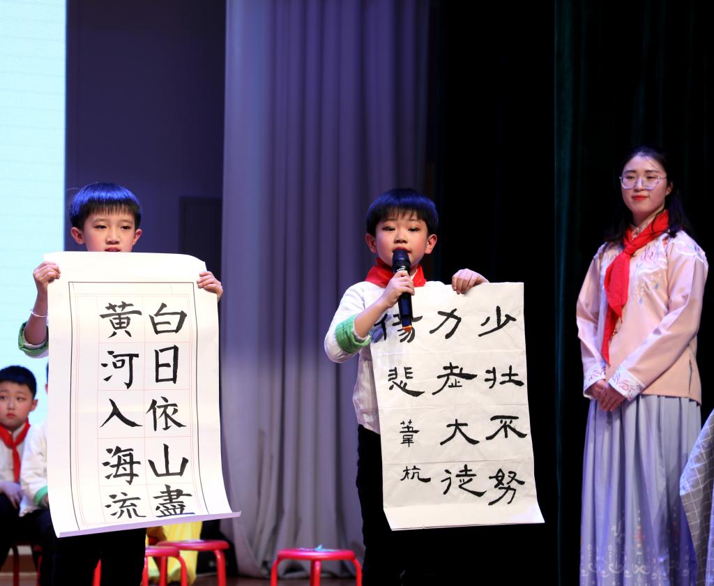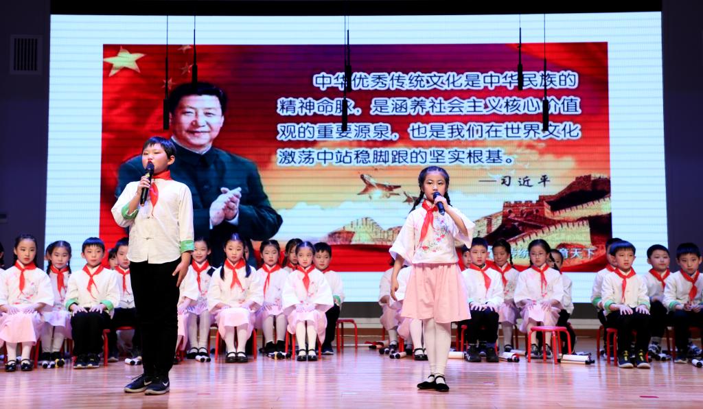 在《我们的榜样》篇章中,党员教师冯燕给大家讲述了自己加入党组织的经历,鼓励孩子们听党的话,跟党走,传承红色基因,为实现中华民族的伟大复兴梦而奋斗。动感中队“红领巾小百灵表演的《闪闪红星》、红领巾社团排练的快板剧《争做文明好少年》既展现了我校少先队员的风采,也是我校利用各个阵地围绕“社会主义核心价值观”和“红色基因的传承”开展的丰富多彩的系列活动的缩影。