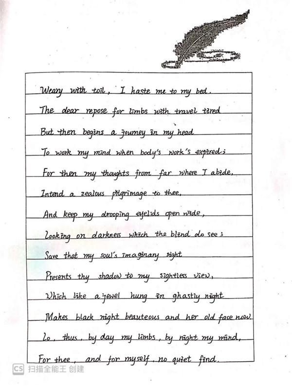 英文书写获奖: