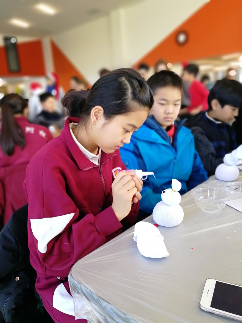 在法国教师的指导下,我校学生与北京法国国际学校同学们互动合作,制作出一个又一个可爱的雪人,同时体验到了法国自由的教育风格;在音乐课上,法国小朋友们合唱了儿歌,我校学生也演唱了练习已久的法语版圣诞歌曲——《Vive le vent》,流利准确的歌声得到法国师生的赞叹和喜爱,悠扬的童声传递着两校的情谊;随后法国师生表演的木偶戏夸张滑稽的戏剧风格让大家笑声不断,也增强了学生们学习法语的热情。