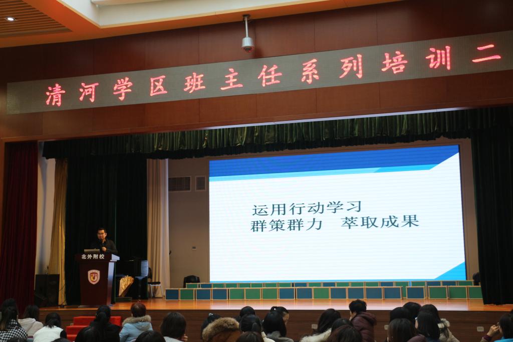 12月14日下午,清河学区班主任系列培训之“家校共育”在我校国瑞厅举行。教育部中国人生科学学会特聘专家 、北京师范大学家庭教育研究中心特邀专家范宸驿老师作《家校共育助力学生成长行动学习研讨》主题演讲,并组织老师们开展讨论。我校小学执行校长刘宏利、副校长孟娜、李琳、孙亚楠和158名老师,以及来自清河学区其他学校的20多名老师参加了培训。