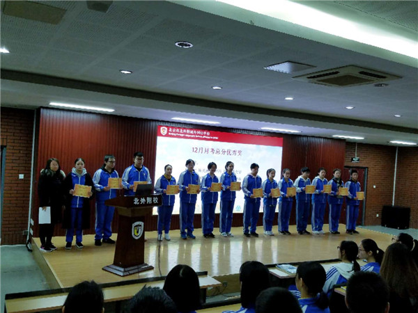 大会表彰了本次月考中获得年级总分优秀奖的学生及在本次考试中取得较大进步的学生,同时表彰了11月的两位校园之星——学习之星王一健以及科技之星张英琦。表彰之后,两位校园之星分别向大家分享了自己在科技与学习方面的心得体会。