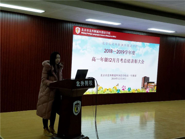 12月18日上午,高一年级全体师生在二阶召开月考表彰暨文明礼仪宣讲会。大会由魏宇晗老师主持。