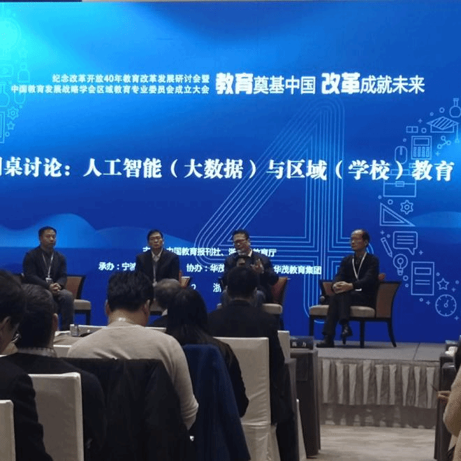 22日,在宁波同时召开了纪念改革开放40周年教育改革发展研讨会。第十三届全国人大常委会委员、民盟中央专职副书记徐辉,第十三届全国正席常委、副秘书长、民进中央副主席朱永新,第十二届全国人大常委会委员、副秘书长、法律委员会副主任李连宁,中国教育发展战略学会会长、北京大学原党委书记闵维方,国家教育咨询委员会秘书长、教育部教育发展研究中心原主任张力,在会上作了主旨报告。会议围绕40年的教育改革发展历史经验、教育法制建设、教育对外开放、基础教育教学改革等主题进行了深入研讨,我校校长林卫民在分论坛圆桌会议上作为特邀专家分享了他对人工智能(大数据)与区域(学校)教育的看法。