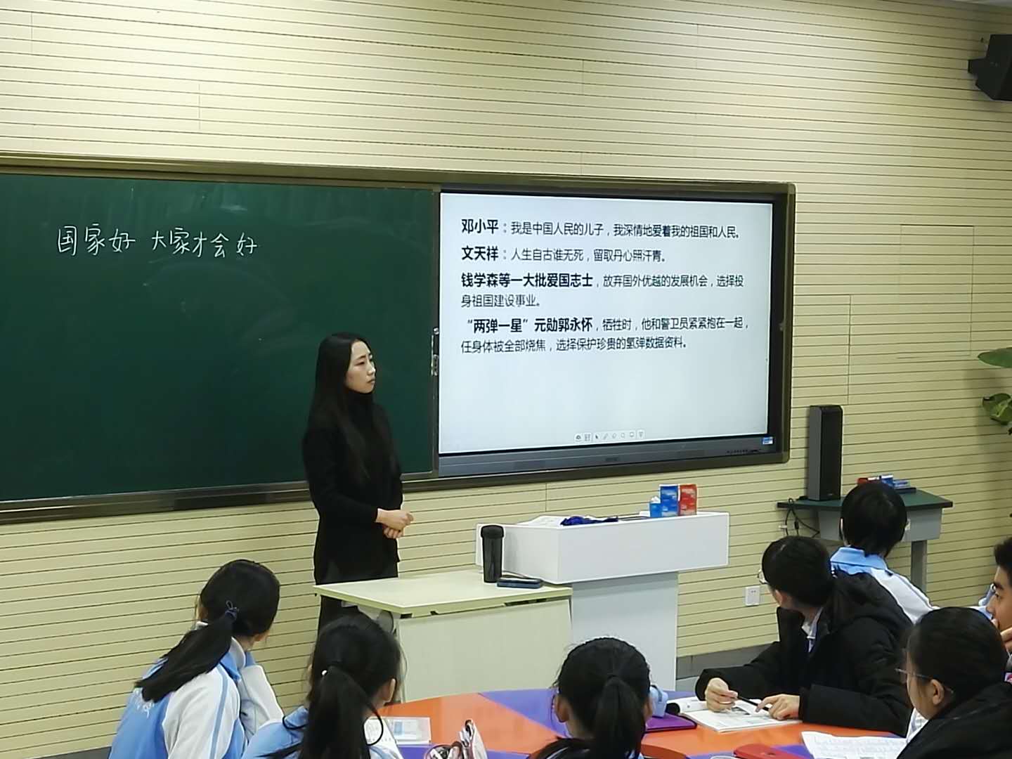 郭丽作为我校年轻教师代表展示了八年级《国家好大家好》课题。郭老师用深入学生心灵的我是演说家中的一段视频作为导入,一下子抓住了学生的吸引力,并切入了这节课主题。通过展示材料、提出问题,引导学生思考并生成知识,不仅让学生掌握了知识,而且培养了学生的材料分析、概括等学科能力。