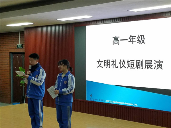 12月29日下午班会时间,我校高一年级全体师生在二阶举行文明礼仪短剧展演活动。各班学生精心准备,演出现场热烈有序,每个班学生都展现出了自己的最佳风貌,最终,评出了各班的特色奖:1班获最佳团队奖,2班获最高人气奖,3班获最佳筹备奖,4班获最佳表演奖,5班获最具活力奖,6班获最具内涵奖。