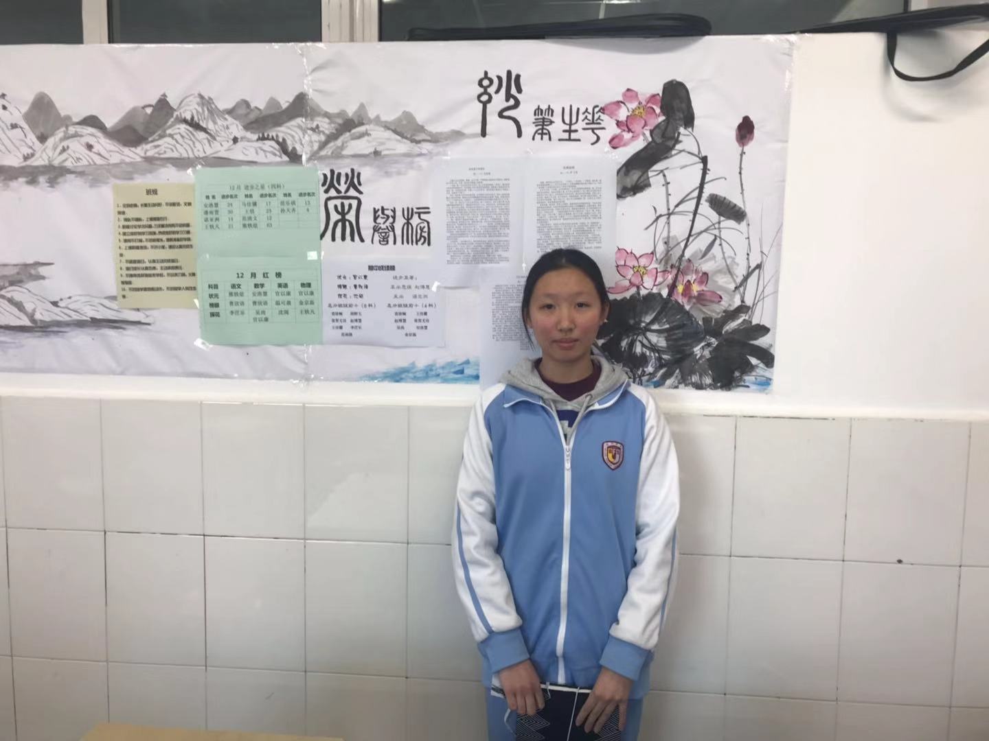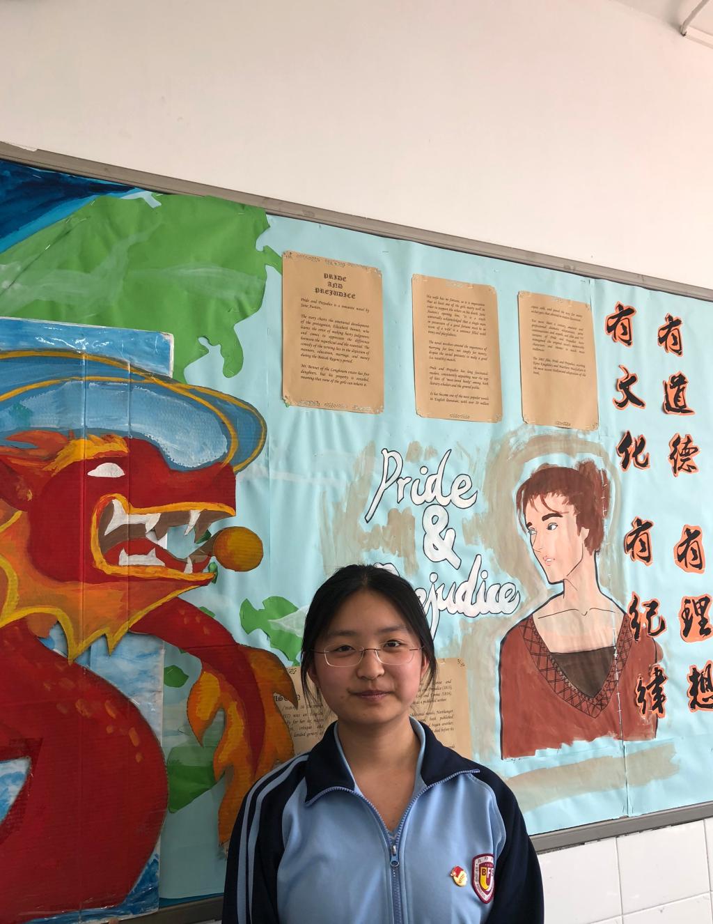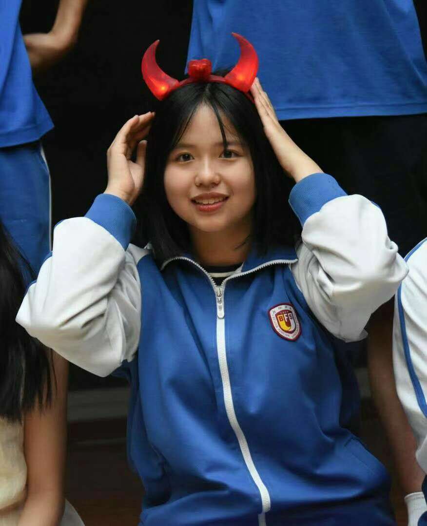 她还积极参与班级各项活动,如设计板报、宣传板等,在外语节活动中都能看到她的身影。