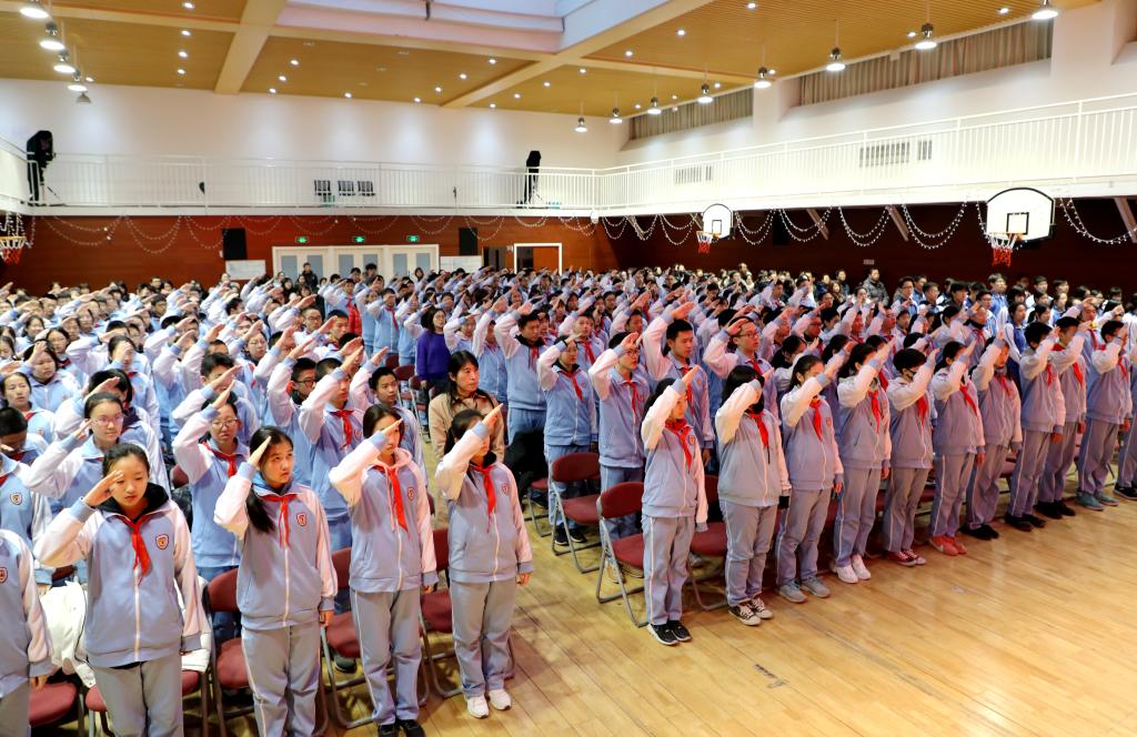 1月7日,我校举行“新目标新希望,科学备考,高效复习”主题升旗仪式,高一4班张一仁和2班罗雨萱两位同学担任主持人。