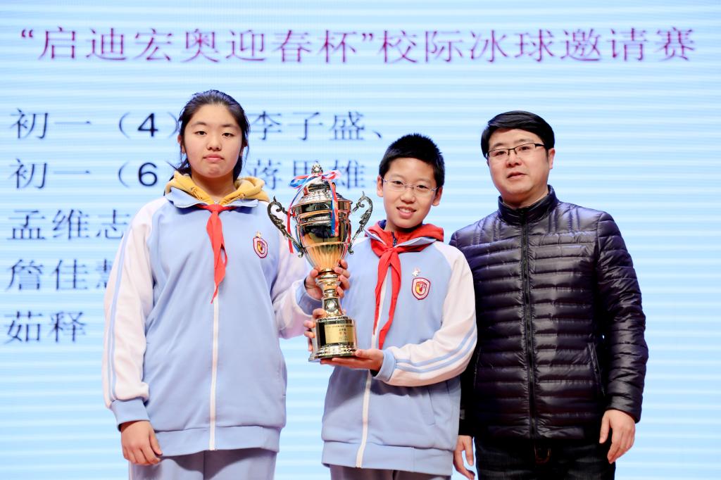在颁奖仪式环节,我校初中五支队伍在教练员潘铎轩、李艳颖以及崔琴老师的指导下,高中两支队伍在信瑶瑶老师带领下参赛,四支队伍荣获“第一名”,三支队伍荣获“第二名”。七支队伍均成功拿到了进军中国区总决赛的入场券。校领导分别为获奖学生颁发奖杯和奖状。
