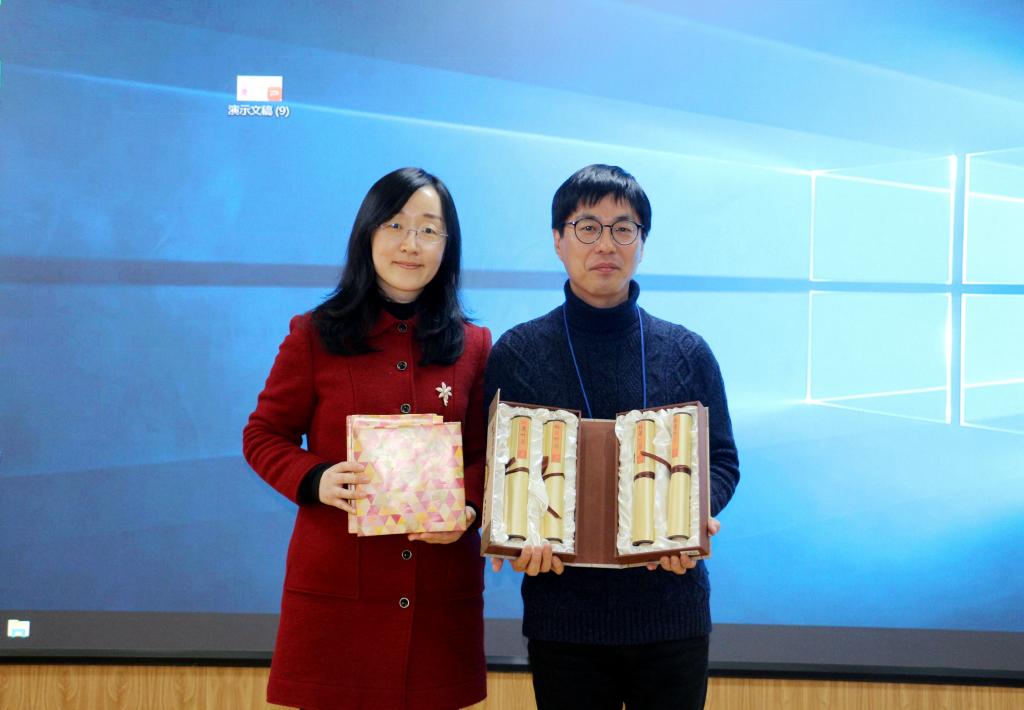 韩国学生代表及我校韩语班学生代表也分别以对方国家的语言分享了两校交流的感悟。随后,双方互赠校际纪念品,高中韩语班学生与大田外国语高中学生也分别交换了礼物。