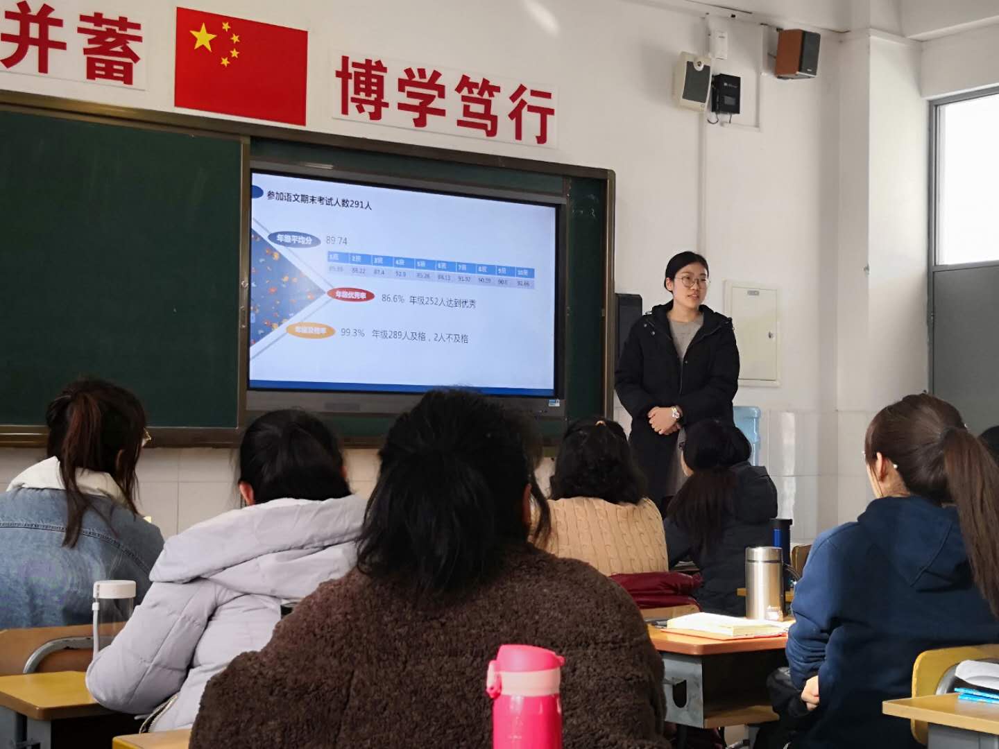 随后,各年级备课组长进行了本学期教学工作总结。老师们在一张张照片、一个个视频、一组组数据中,回忆了本学期开展的各种活动;针对本次期末考试,老师们分享着成绩,寻找着不足之处,探索着前进的方向。一年级备课组重点分析了扩大识字量、规范写字对孩子语文习惯培养的重要性,建议老师们鼓励孩子多识字、认字。二年级备课组着重强调了孩子们在笔顺、笔画的规范上存在的问题及改进方向。三年级备课组对老师们兢兢业业的付出表示感谢,并表示将再接再厉,带领孩子取得更加优异的成绩。四年级备课组提出要依托语文综合实践活动教学,提高学生的知识积累。五年级备课组针对学生易错题型进行详细分析,进一步解读了课标对高段学生能力水平的具体要求。六年级备课组详细呈现了孩子们本学期丰富多彩的语文实践活动,并对假期作业布置提出明确方向。