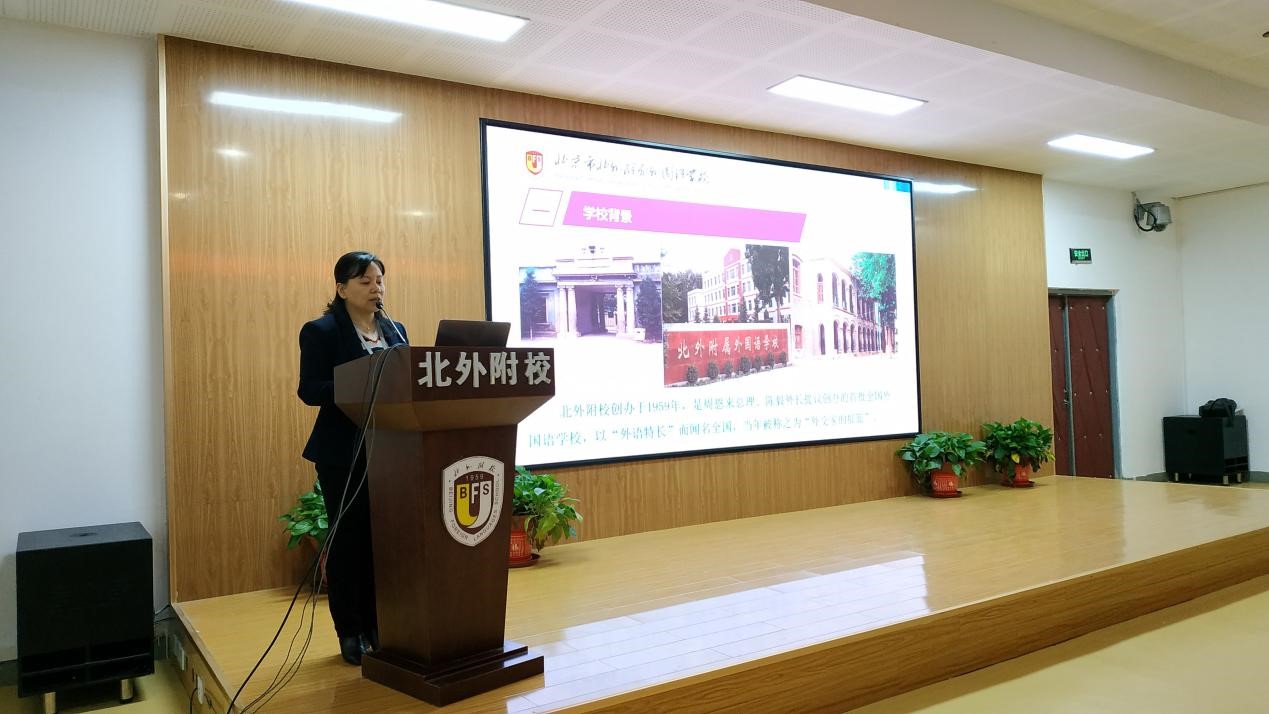 我校党总支书记张继军向参会学生和家长介绍了北外附校的办学背景和我校开展国际教育的情况,并通过对中国国际教育的变化趋势、国际化人才的核心能力以及优质国际教育特点的分析向家长阐述了当前中国开展国际教育的现状。最后,她向在场的家长着重介绍了我校初三国际预科班的教学情况、特色及优势并建议家长和学生在选择国际教育前,要做好全方位的了解,无论是语言还是培养方案都要做好充分的准备,选择最适合孩子的国际教育课程。