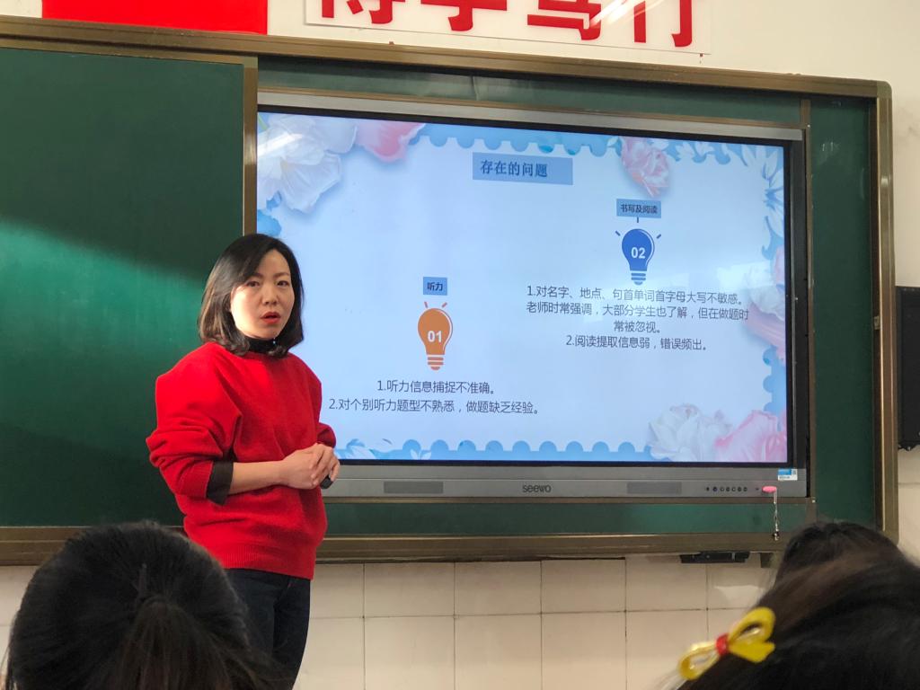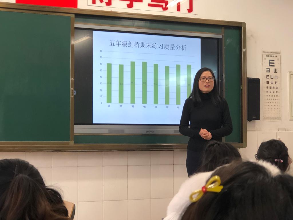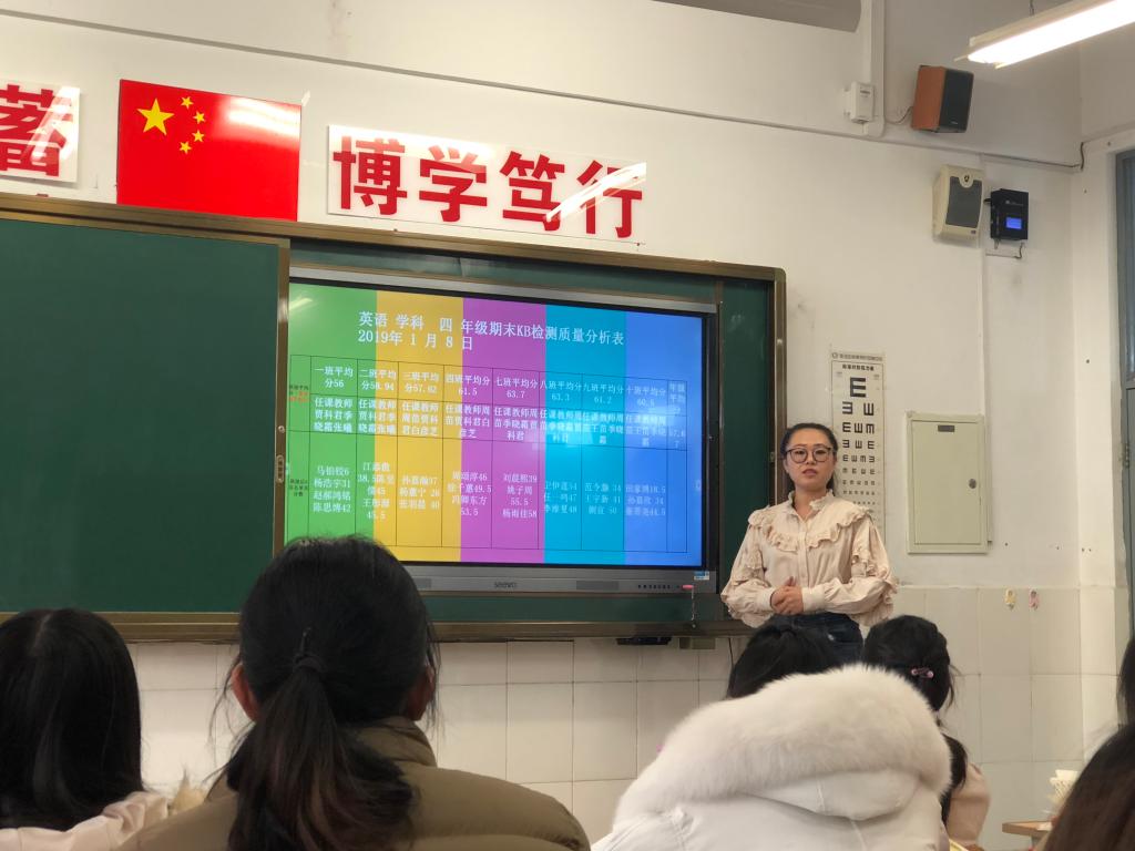 教研组长季晓霜老师对各个年级的分析进行总结,并给出指导性意见,季老师提出各个年级都应该灵活运用新起点题型进行平时的英语单元练习,提高学生的思维能力。最后宋花磊主任肯定各位教师的认真工作,希望大家能够利用质量分析有效指导和调整自己的教学,并指出下学期将加强专家进校指导,促进英语教研与课堂教学的进一步提高。