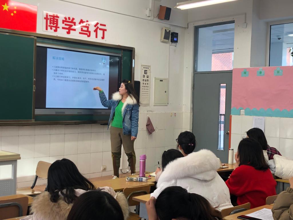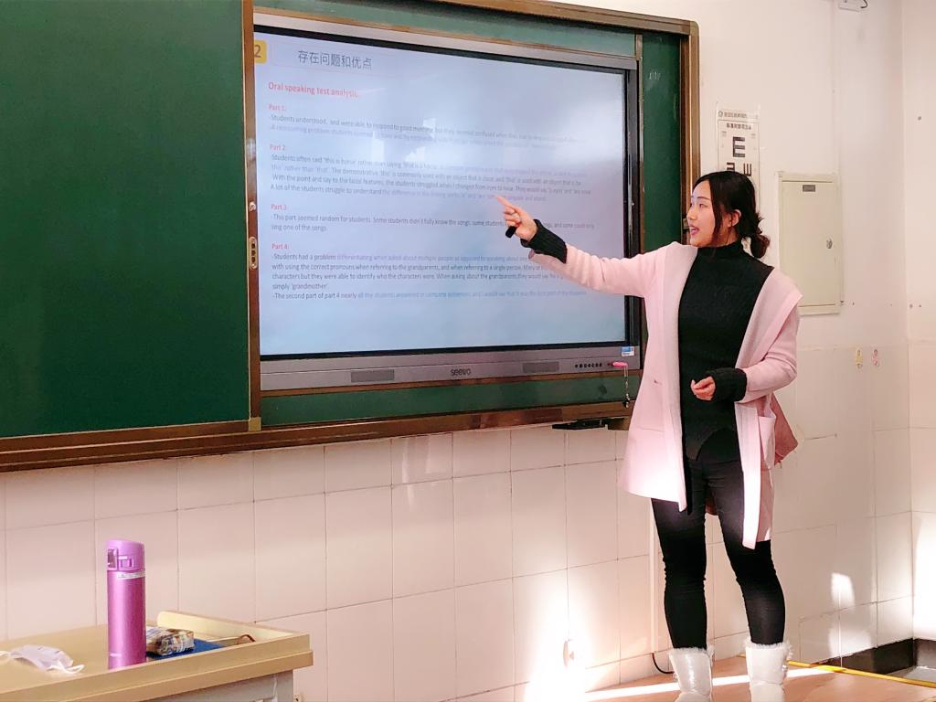 六个年级的备课组长首先对本年级各班的均分及本年失分原因进行说明,并根据日常教学情况,分别对口语和笔试部分的具体问题提出针对性解决策略。