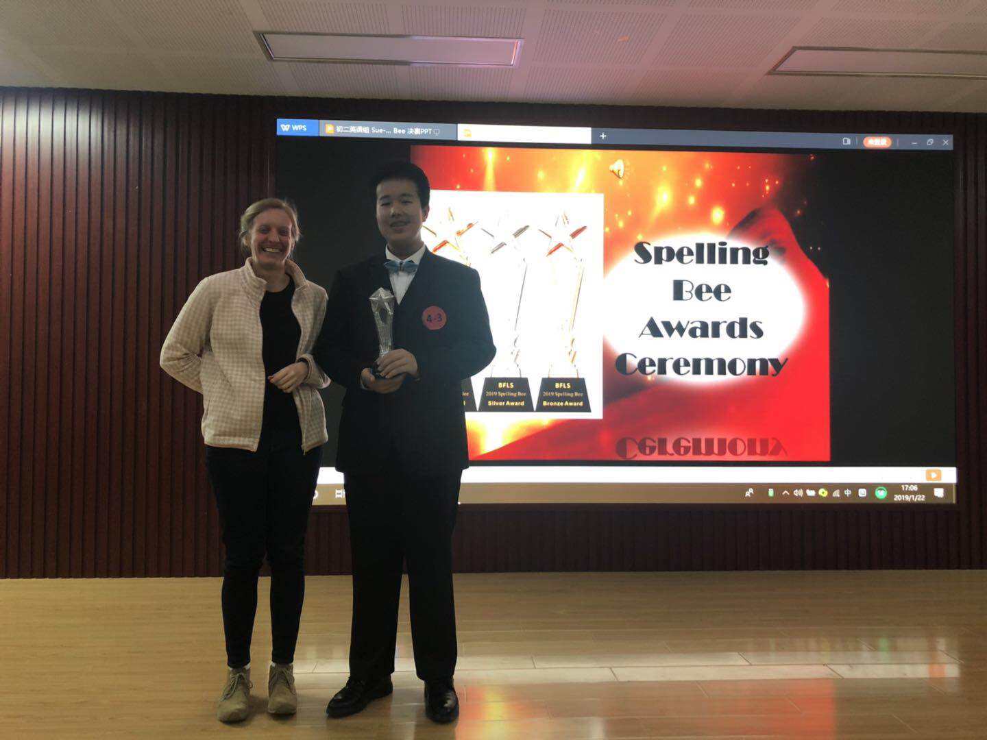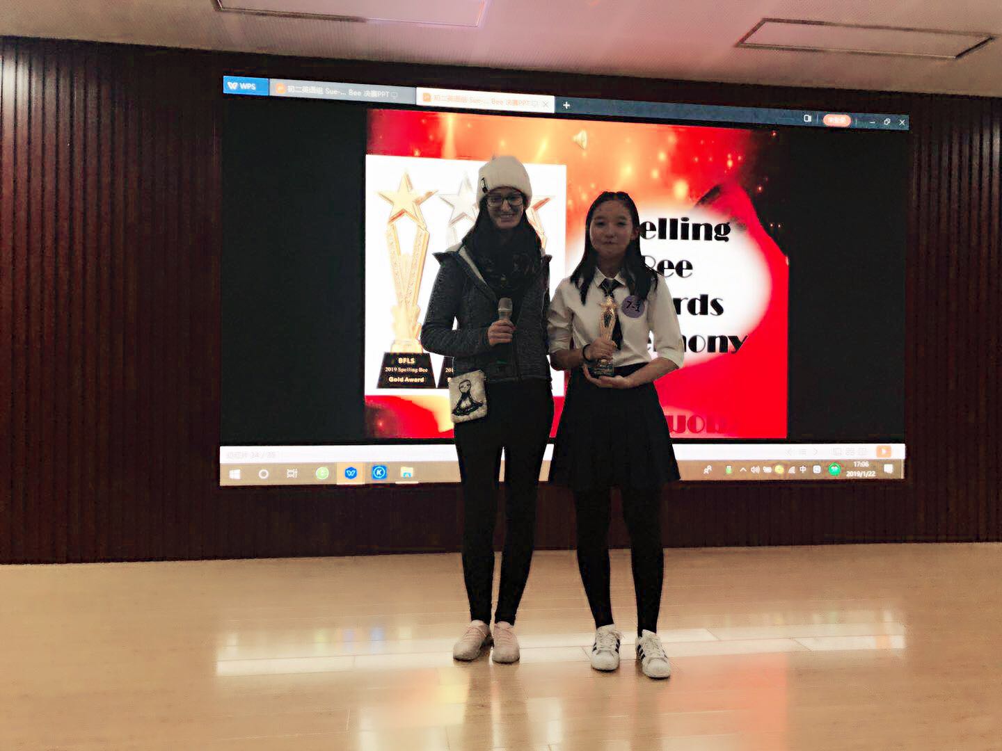 1月22日下午第八九节课,初二年级英语组的教师们精心准备了一场拼词的盛宴。下午3:50,一年一度的拼词大赛(English Spelling Bee)在二阶拉开帷幕,这场缤纷夺目的盛宴在全体同学的瞩目下如期而至。初二年级全体学生在英语老师推荐下每班选取了5名选手代表班级参加比赛。本次大赛评委团队由外教Emily和Tamara以及初二年级各位中教老师组成。拼词大赛主要考察了选手现场听、读、拼词的能力,其中不乏对学生随机应变能力、现场反应能力以及心理素质的考验,可谓是一场词汇积累与综合能力的较量。