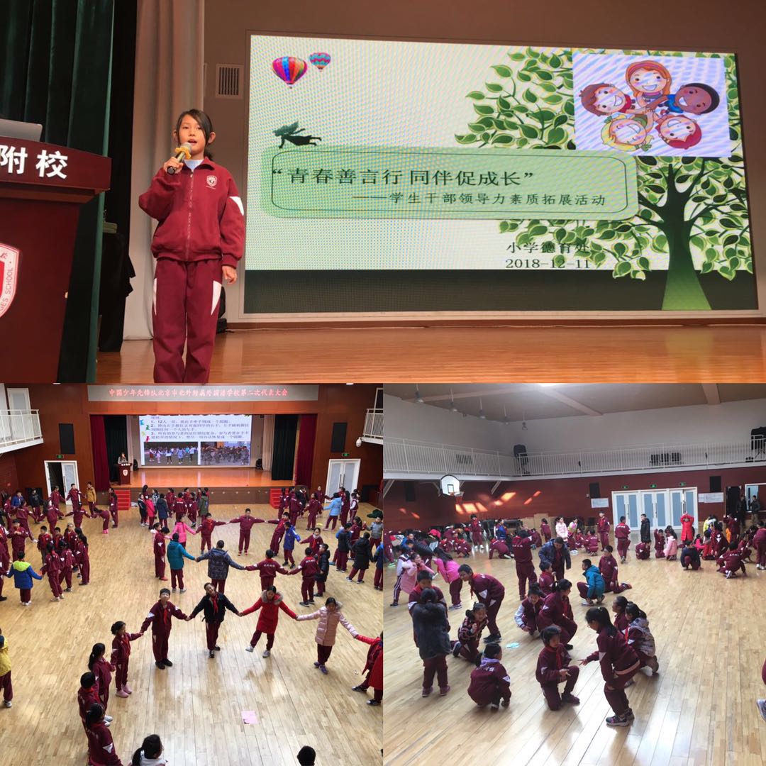 1. 学生领导力系列拓展活动:“规则的力量”、“目标引领成长”、“逆风飞翔 快乐成长”、“青春善言行 同伴促成长”小干部培训活动等;