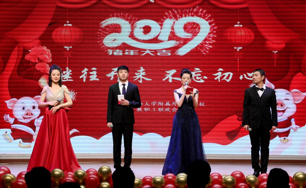 旧岁已展千重锦,新年更进百尺竿。1月25日上午,“继往开来,不忘初心”2019北外附校纪念改革开放40周年新年文艺联欢会在国瑞厅隆重举行。学校党政领导林卫民、张继军、于苒、高雁鸣、杨磊、王静等,与全校教职工员工欢聚一堂,我校家长代表金健、孙先东和谷文成先生也受邀前来,在欢笑和掌声中欢庆2019年的到来。