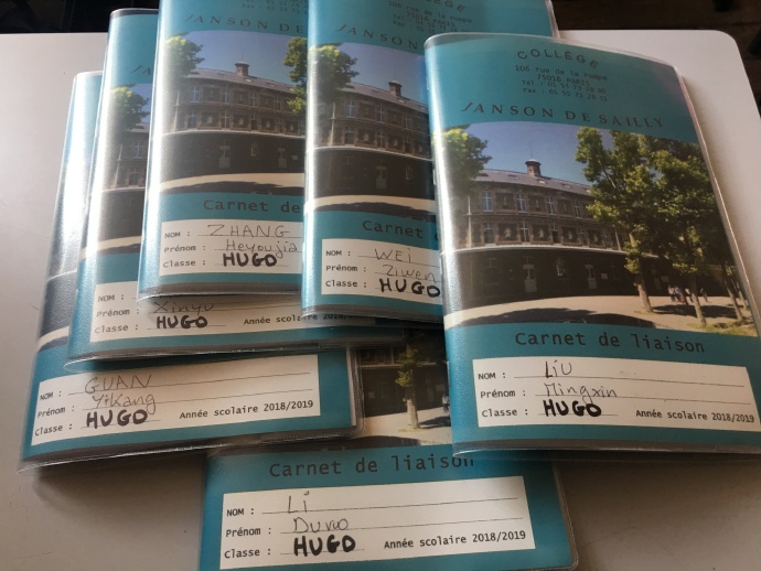 法国学校及时为我们做好了家校联系手册和食堂餐卡,是类似于一个记录在校表现的档案本,背面是出门卡,法国学生出门、进门都需要出示家校联系手册。从这一刻开始,我们都正式成为德萨伊中学正式的借读生啦。