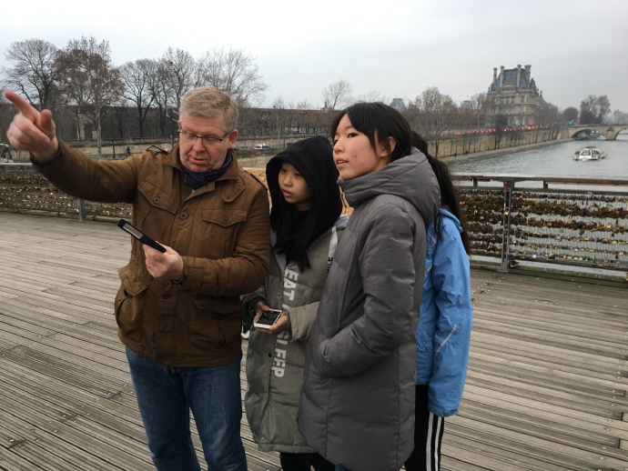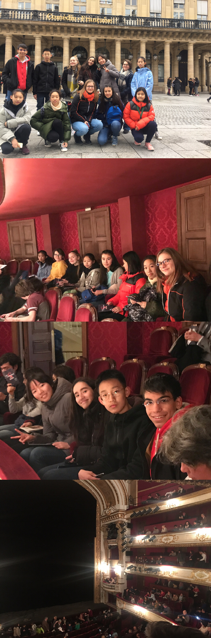 今天的巴黎空气湿润,天阴略有些阴沉,就像一个安静的小女孩静静的迎接着我们的到来。下午,德萨伊中学和家长们安排全体12名中法小伙伴一起去了由路易十四创建于1680年的法国最古老的“法兰西喜剧院”,我们要一起观看莫里哀的经典喜剧<<斯卡潘的诡计>>。结束后在法国爸爸妈妈们的带领下,我们穿过卢浮宫、杜乐丽公园一起沿塞纳河散步回家,周围伴随着我们的还有许多沿途跑步的法国人,伊奈斯的爸爸为我们一一讲解沿途景点及其历史典故,气氛非常融洽,大家都非常开心。可是美好的时光总是短暂的,不久我们就到家了,是时候为第一天的法国学校生活做准备了!