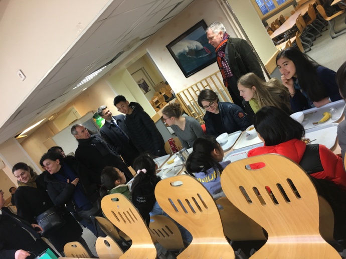 到了学校,德萨伊中学为我们准备了欢迎早餐,他们的大校长Sorin先生和初中校长Anne先生还有老师和家长们都一起在餐厅欢迎我们的到来,他们就像早晨的太阳一样热情、明朗。随着这热情的迎接,我们六位学生心中也升起了一团暖暖的火。
