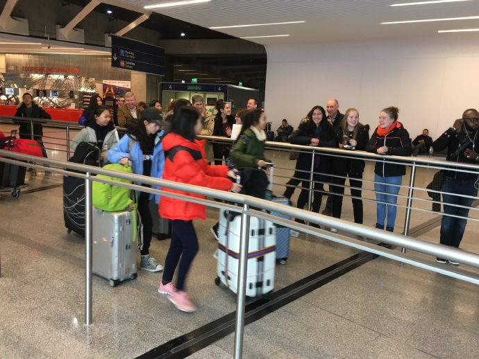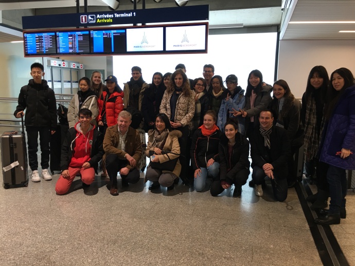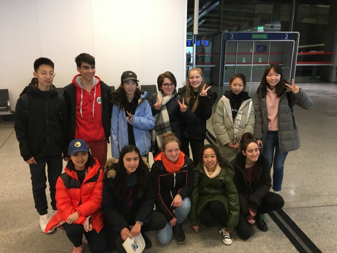 周六下午五点多左右,六名附校维克多雨果项目交流的学生刘明鑫、张贺尤佳、李杜若、曹欣语、官以康、我和郭老师一起到达了戴高乐机场。我们一出闸口就看到半年多没见的小伙伴和家长们举着小牌子在等我们,心里非常激动。在小伙伴伊奈斯的介绍下,我第一次见到了她的爸爸妈妈,他们非常热情让我感到非常亲切。在机场,我们给小伙伴带来了上次北京交流的活动纪念册,看着图册照片里熟悉的一幕一幕,我和小伙伴好像又回到了之前那段美好的时光,一切都没有改变。
