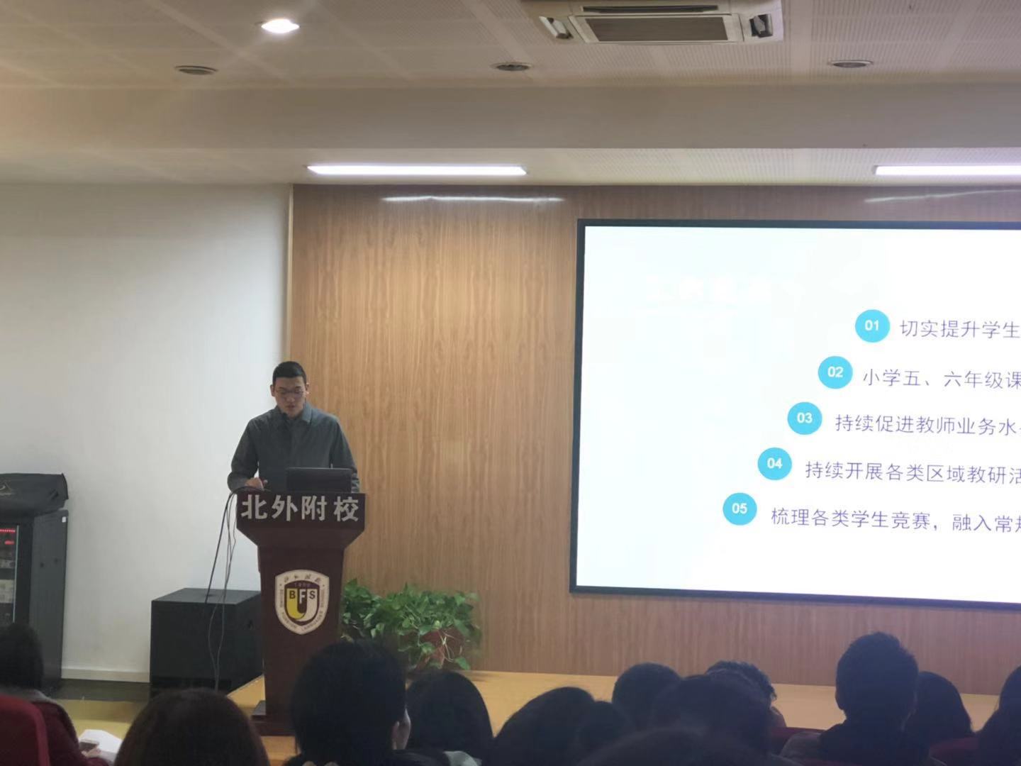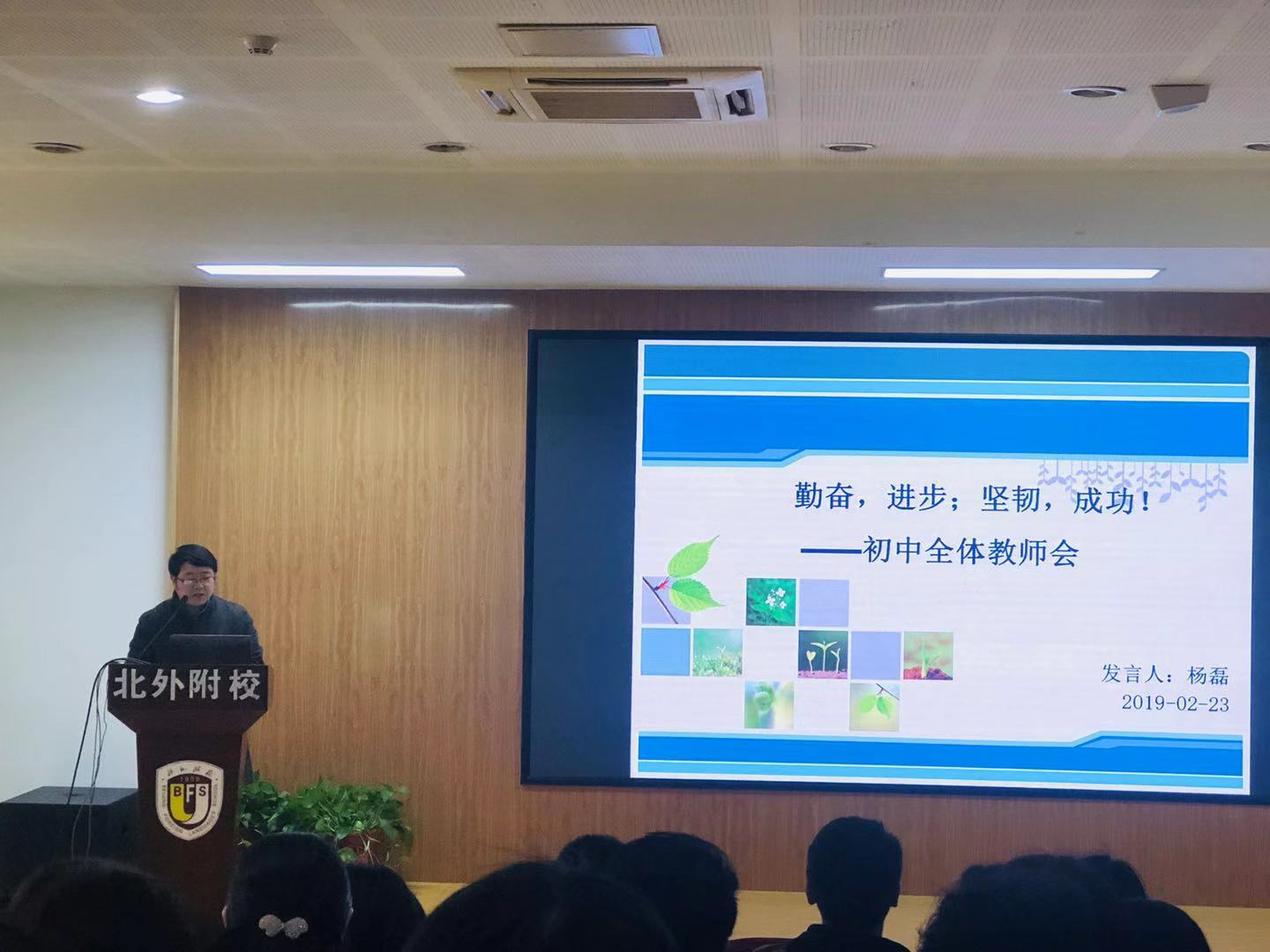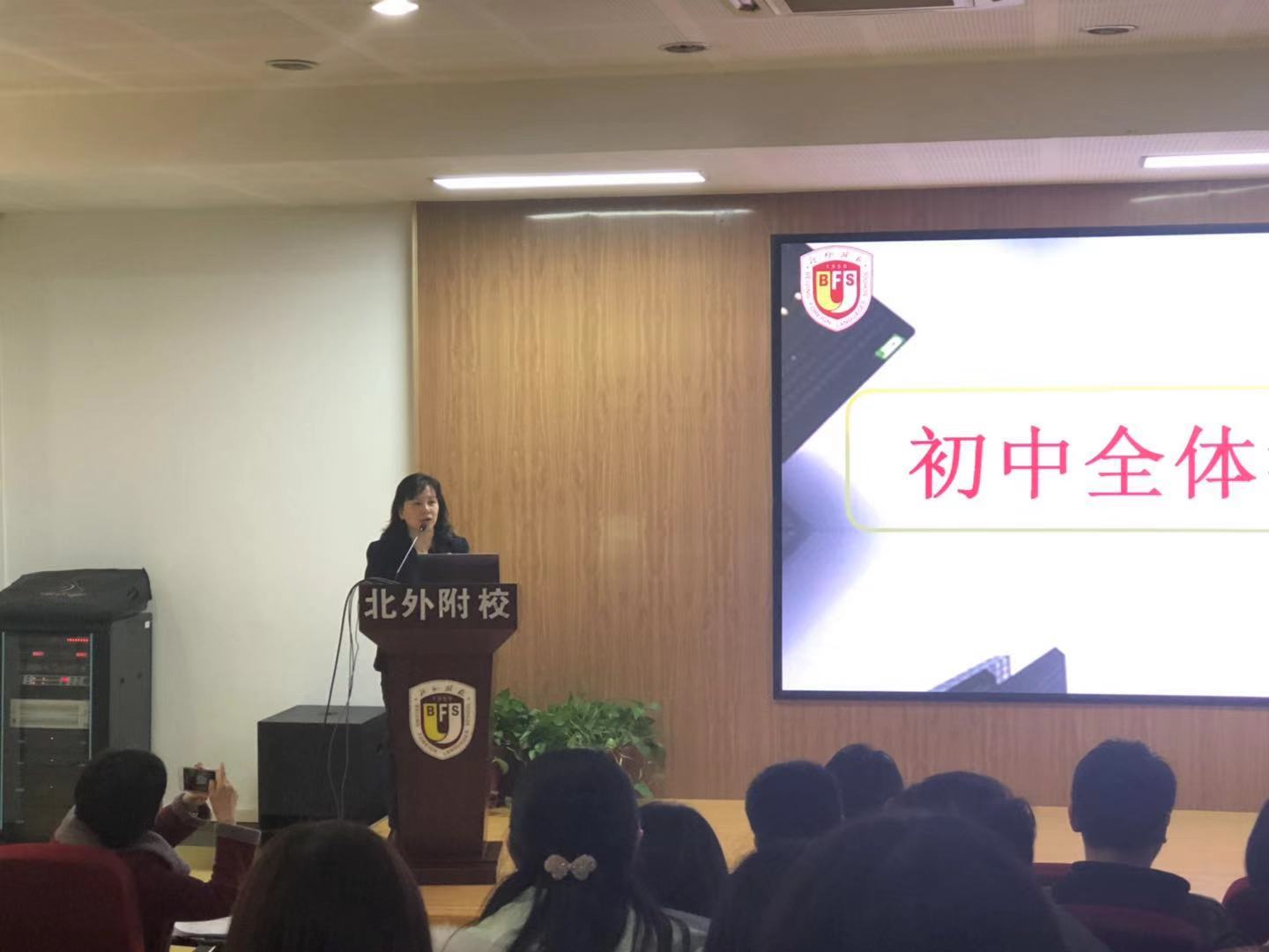 2月23日下午,我校初中召开新学期全体教师大会。会议由初中德育副主任章继华主持。出席会议的有北外附校党总支书记张继军,初中执行校长杨磊以及初中全体教师。