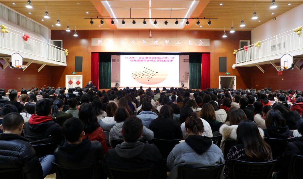 2月23日上午,我校新学期全体教职工大会在国瑞厅召开,学校党政领导及全体教职员工参加了会议。会议由党总支书记张继军主持。