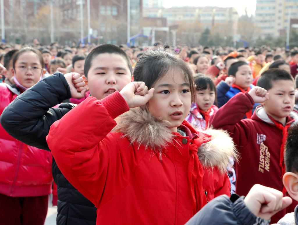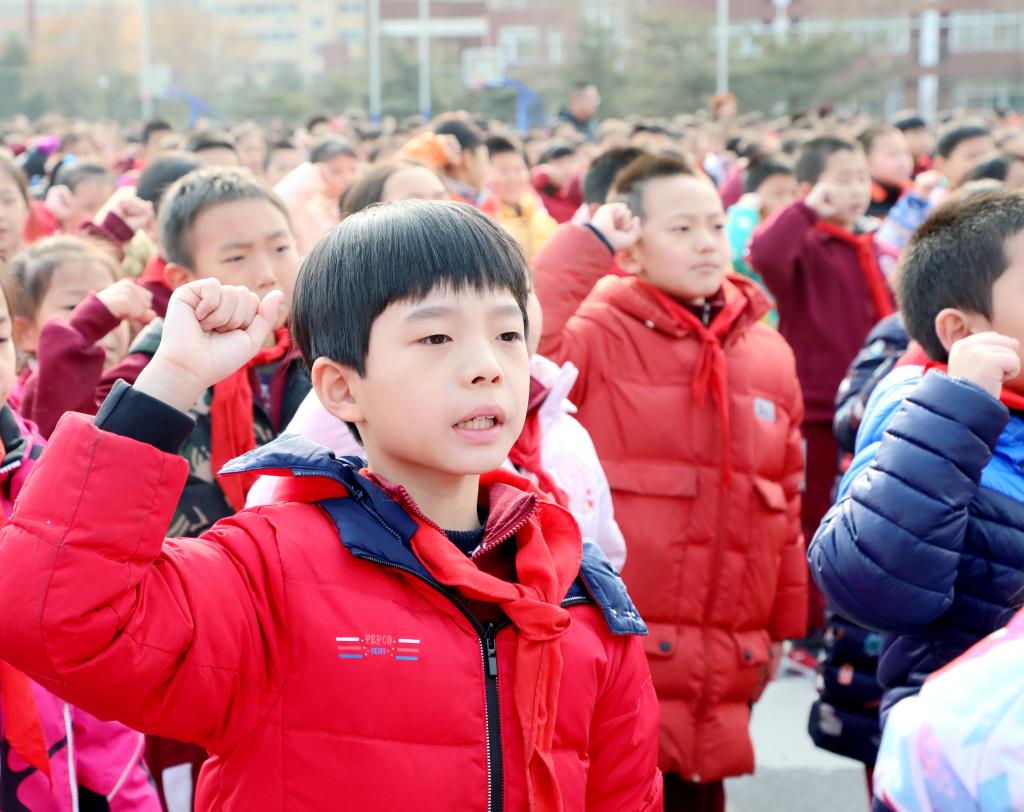 最后,孙亚楠带领全体师生进行宣誓,孩子们在慷慨激昂的誓词中,感受到了新学期的希望,放飞了新学期的梦想。
