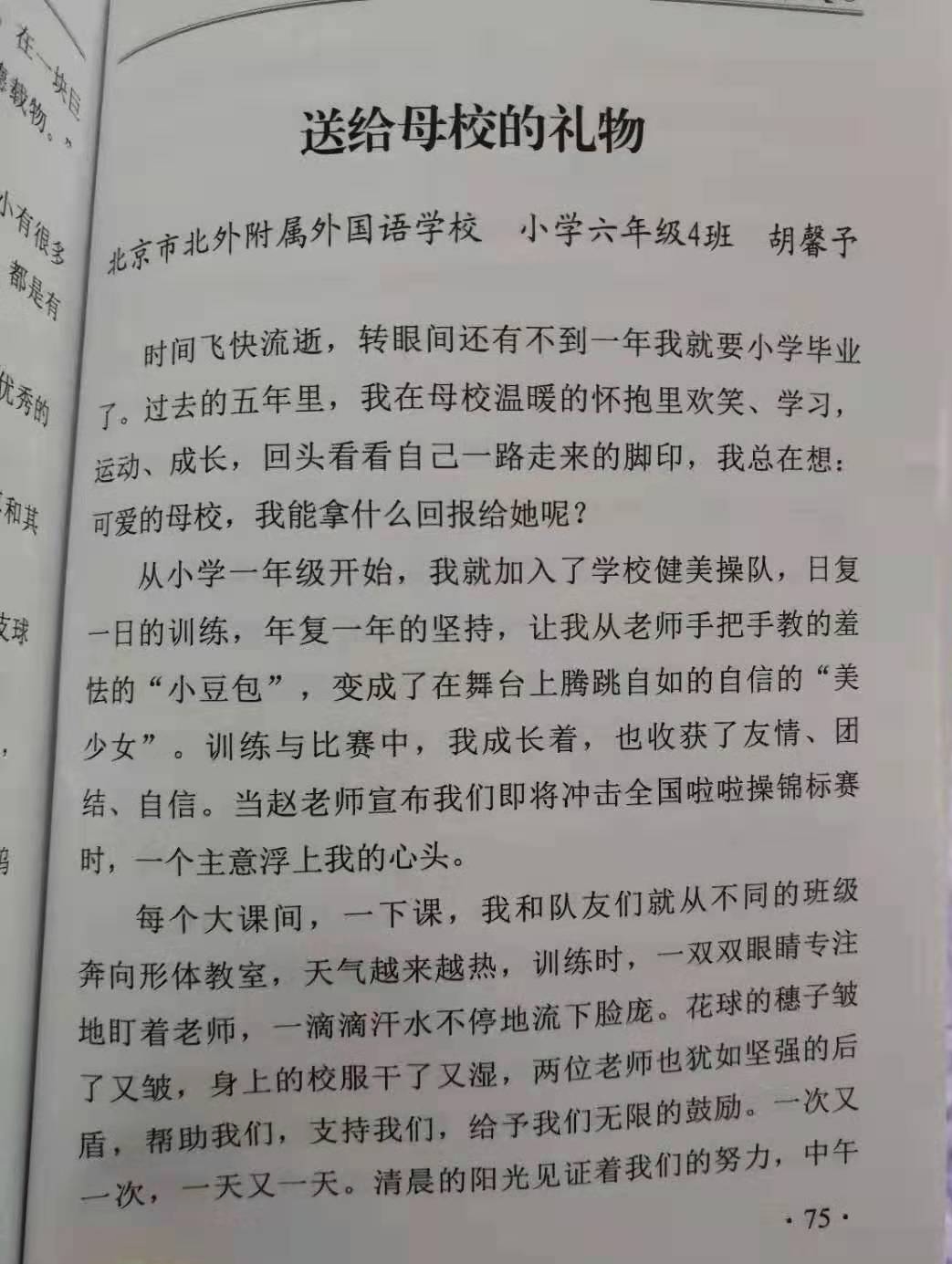 努力才有回报,喜讯传来:我们闯进了全国啦啦操锦标赛的决赛圈!我们将代表学校在大赛中展示自我!那个周五,全体队员、老师和部分家长一同赶往天津。急切的、紧张的、激动的心情交织在一起,都化作一句句“加油”,一个个相互鼓励的眼神。比赛终于拉开了帷幕!在同队小队员震耳的加油声中,我们手搭着手,肩并着肩,昂首阔步跑向舞台。随着音乐响起,我们犹如小精灵一般在梦境起舞。我们一个个面带甜美的微笑,舞姿优美,配合默契。我们用眼神交流,用余光找齐排面,用微笑互相提醒,一句句加油声在耳边化作老师曾经的鼓励和教诲,校长的嘱托和期望。随着音乐从高潮到低落,一场梦幻般的演出结束了!一支又一支队伍,一套又一套操,第一天上半场的比赛接近尾声时,终于等到了期盼的颁奖典礼,主持人宣布了各个项目获奖名单--------我们获得了第一名!我心里顿时涌起激动的浪花 !冠军多么来之不易啊,它的背后有辛勤的汗水,有团结的力量。我和队友欢欣跳跃,却不仅仅是为了冠军的荣耀!亲爱的母校,请您静候佳音!在之后的几个比赛,我们队所参加的项目分别获得四冠一亚的优异成绩!