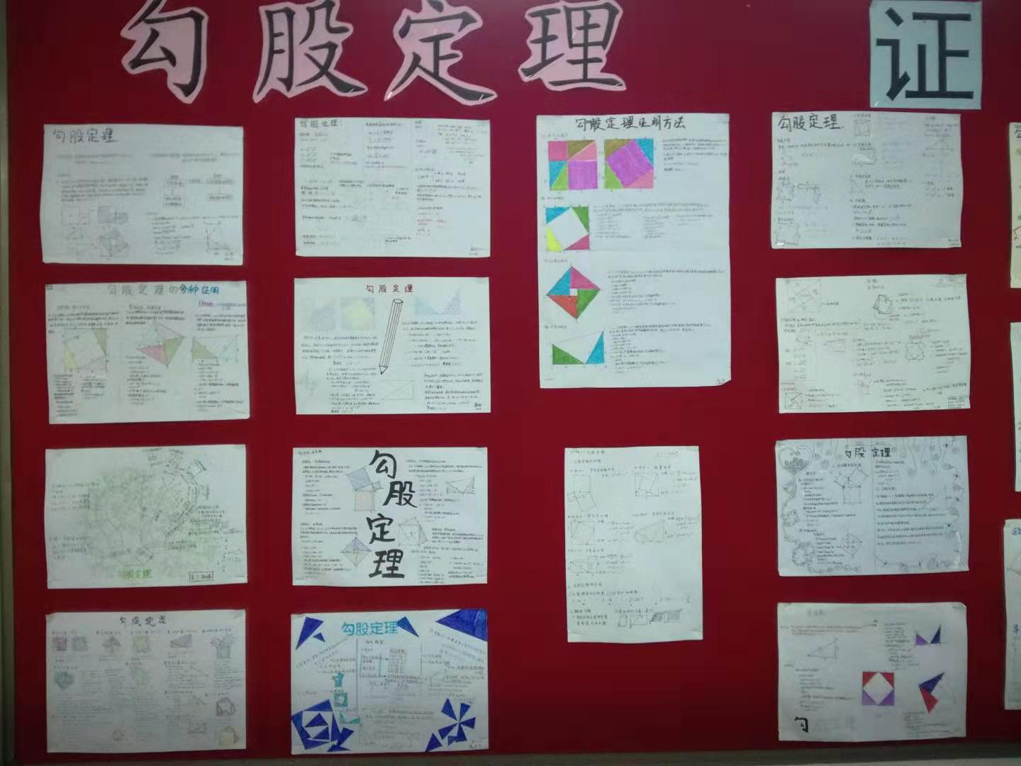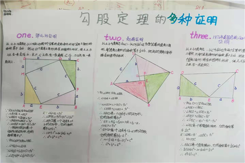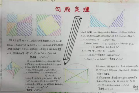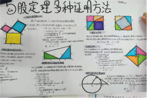 欢乐的寒假刚刚结束,新的一学期已经开始。寒假期间,我校学生完成了创意十足的寒假作业。其中,我校初二的同学们就积极展示了他们的一项数学作业——对已学“代数”知识进行梳理和“勾股定理”的证法收集。