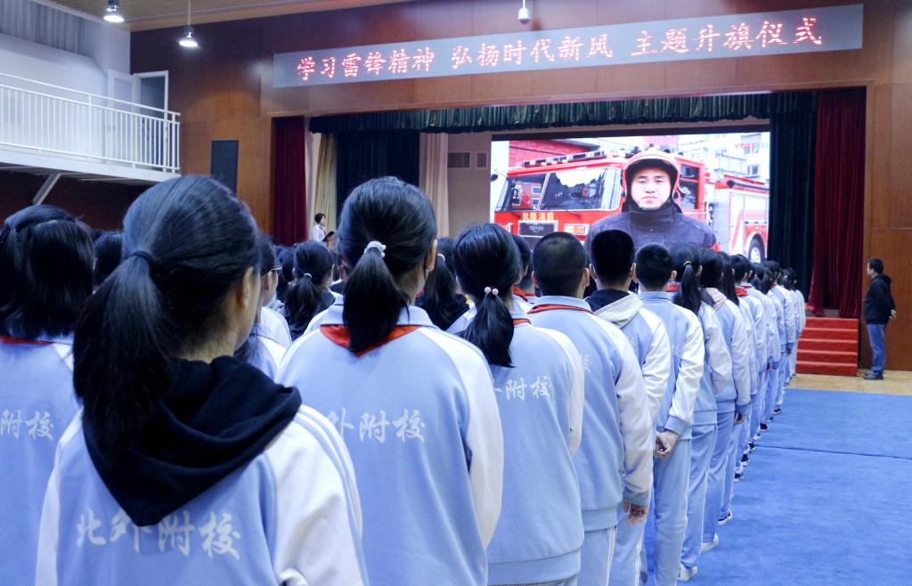 3月是学雷锋月,全国各地积极开展向雷锋学习的活动,雷锋精神的教育激励了几代人为建设祖国献出自己的青春。“向雷锋同志学习”已经成为亿万中国人的生活实践,助人为乐的雷锋精神已经成为中国人的美德。升旗仪式后,全体同学观看了“雷锋精神”主题视频,视频展示了“学雷锋”榜样们刻苦耐劳的钉子精神,歌颂了志愿者们的无私奉献。