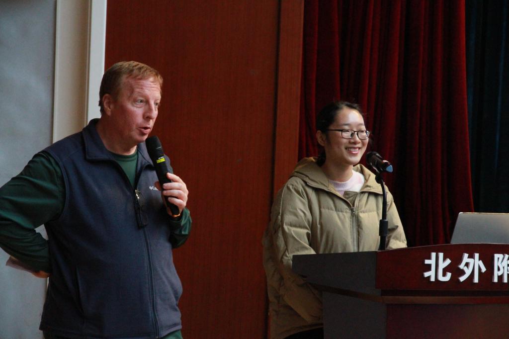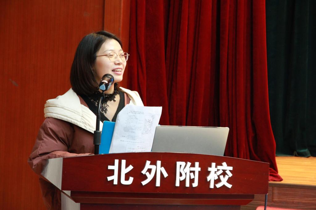 外教老师代表发言,他对于英语口语教学和提高学生表达的兴趣提出自己的见解。他表示,可以通过课堂角色表演,甚至有戏曲表演,能够吸引其他学生的注意力等方法进行教学。北外附校的学生是幸运的也是幸福的!