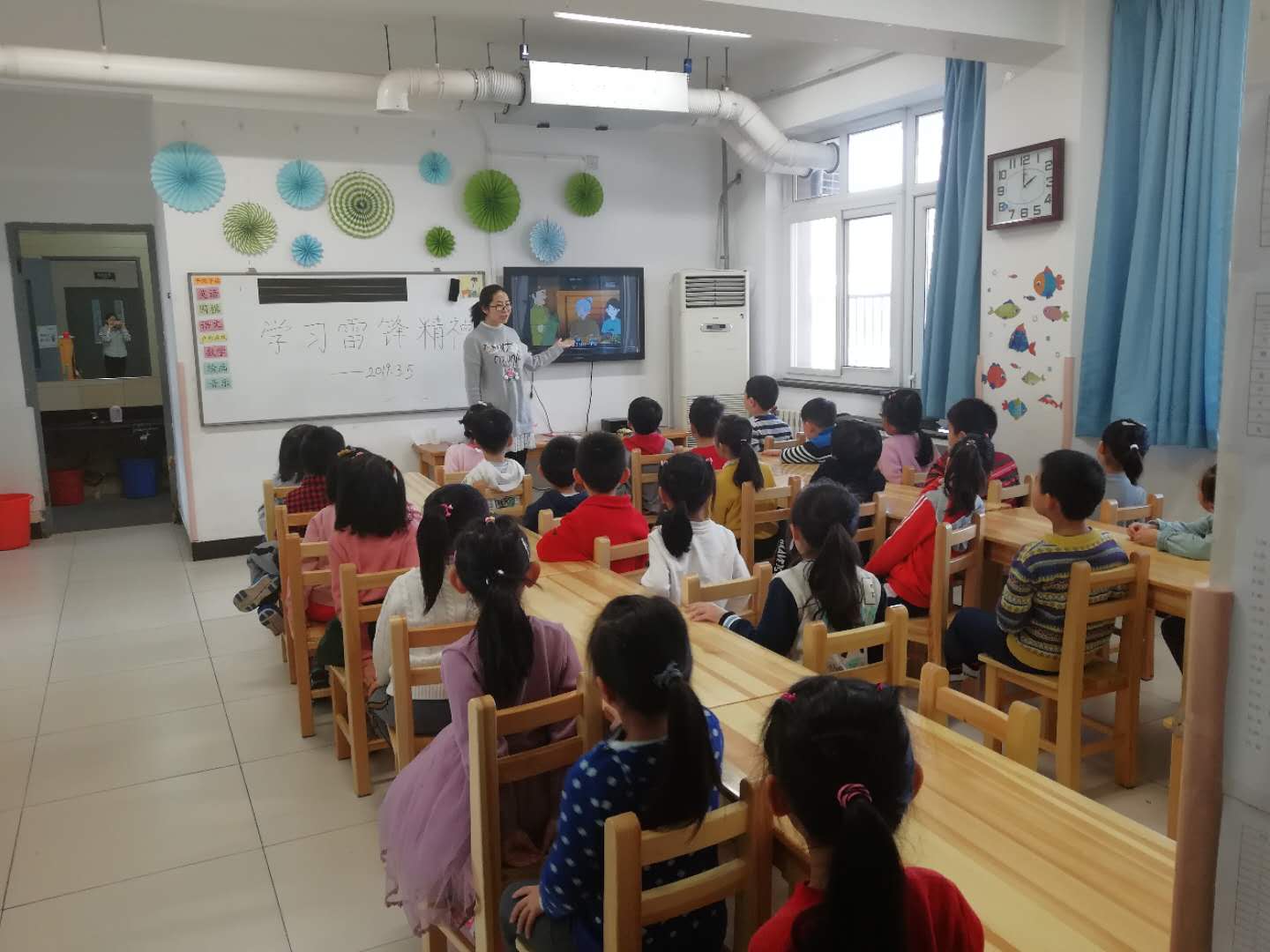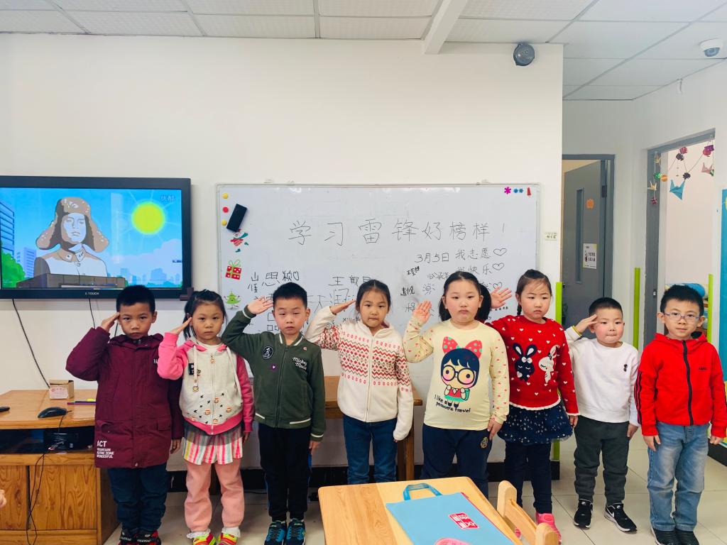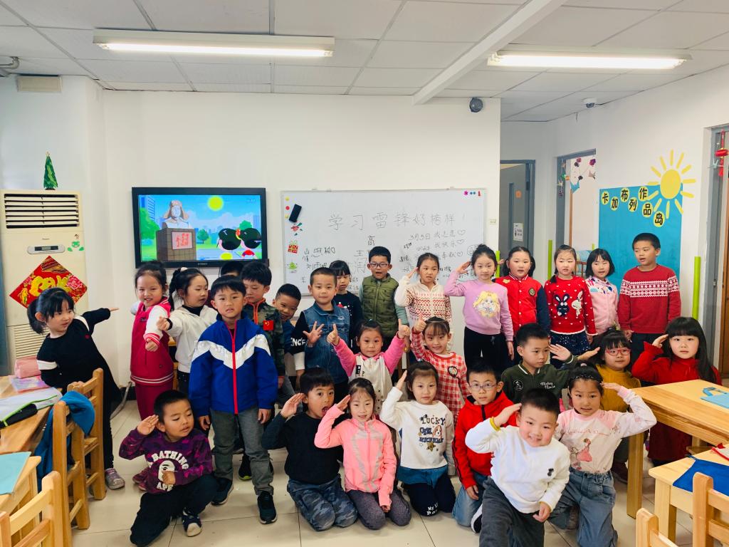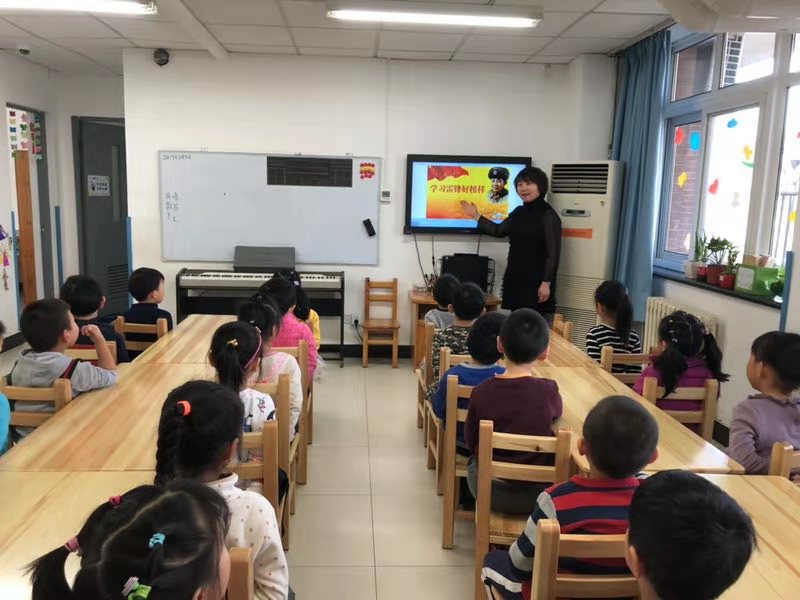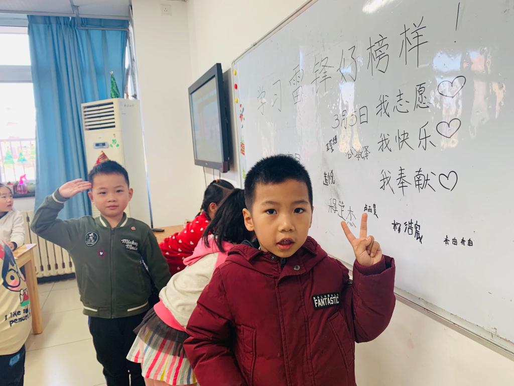 老师们组织小朋友观看《好事做了一火车》的故事视频,向小朋友们介绍了雷锋同志的事迹,并教唱《学习雷锋好榜样》的经典歌曲和《雷锋童谣》。孩子们自发在“学习雷锋好榜样”的主题白板上签字,表达向雷锋同志学习的决心。