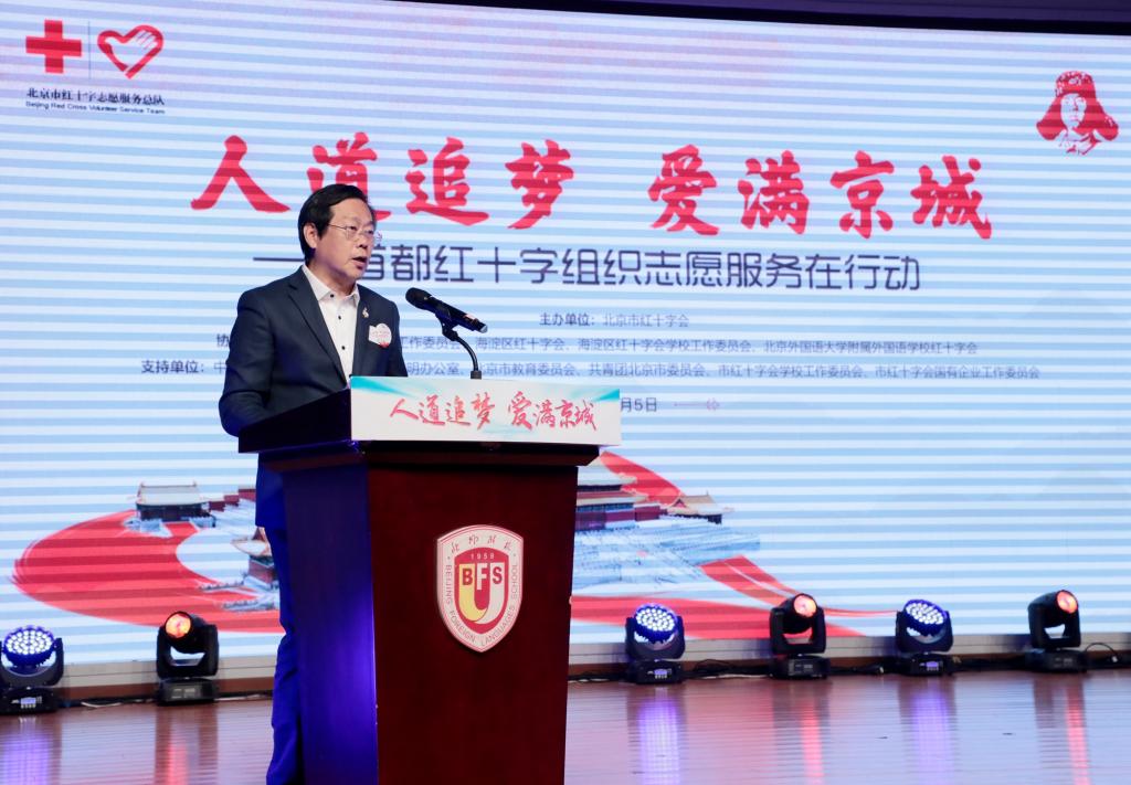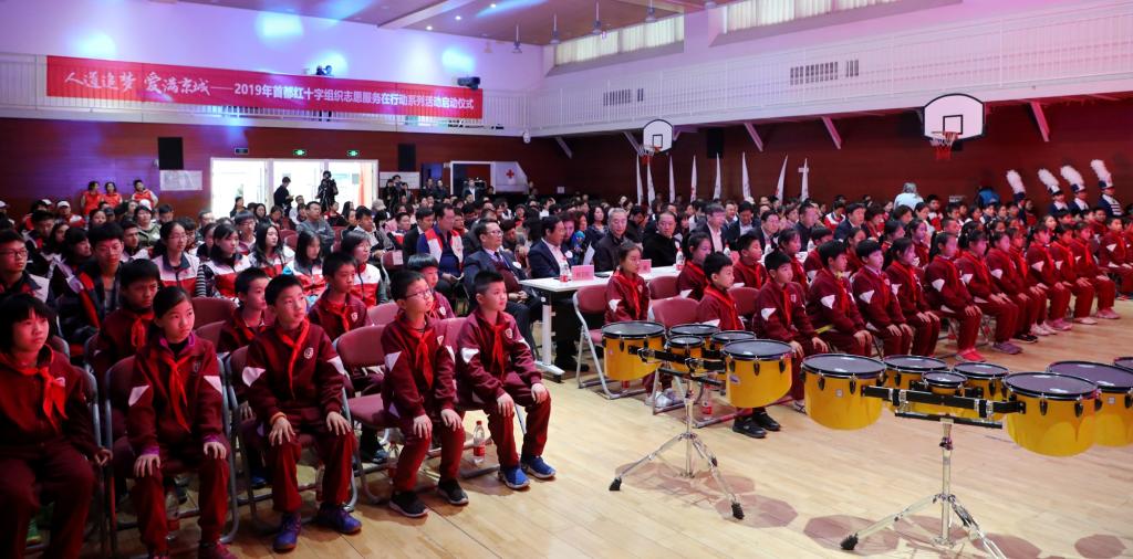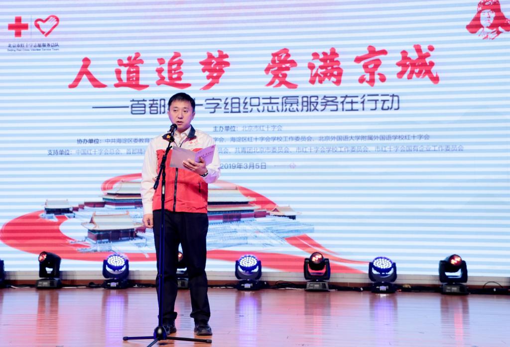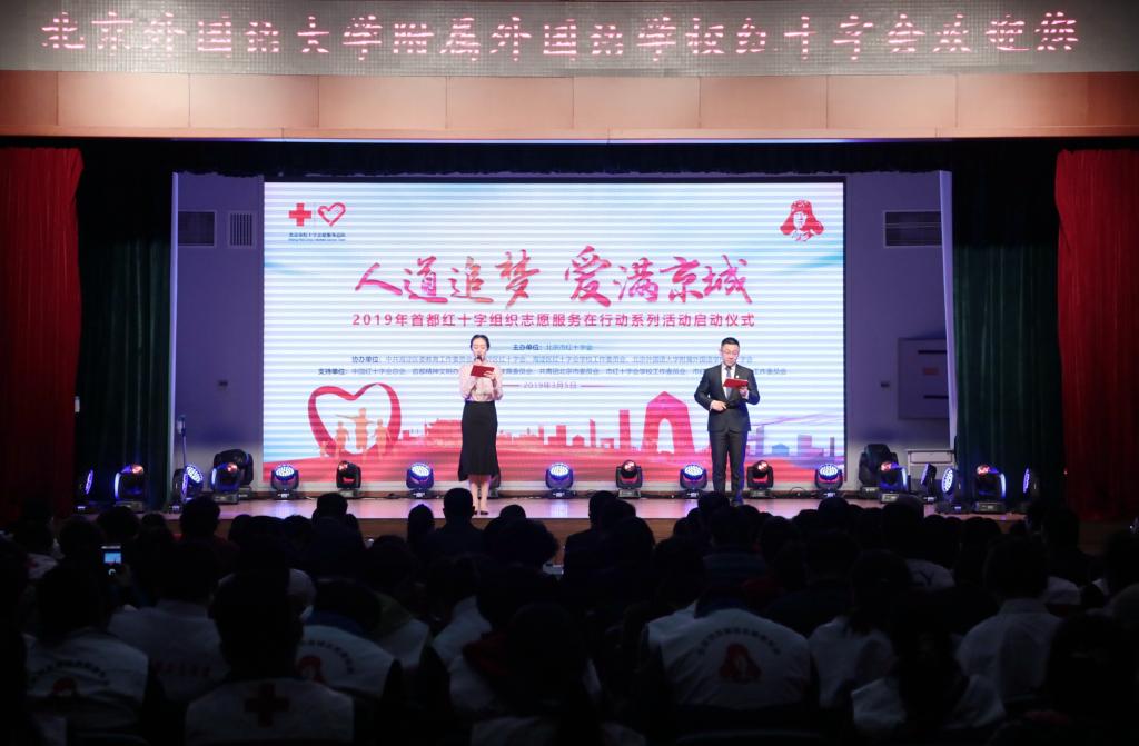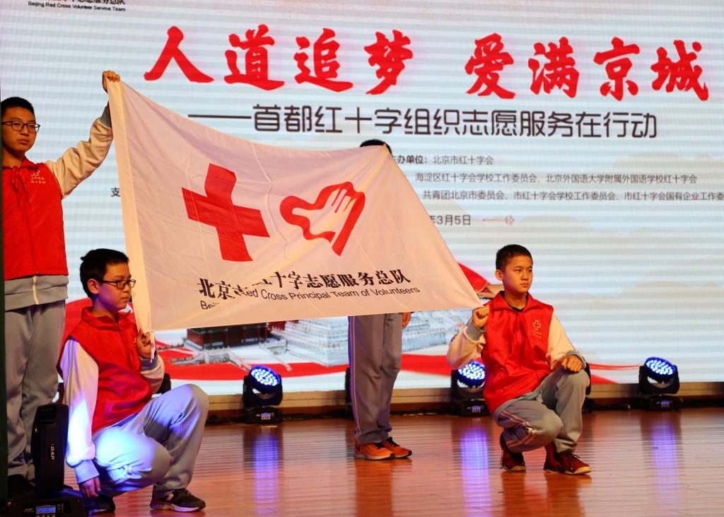 3月5日是第57个学雷锋纪念日。在这个特殊的日子,为动员和凝聚更多社会爱心人士学习雷锋精神、践行人道服务、弘扬社会风尚,“人道追梦 爱满京城”2019年首都红十字组织志愿服务在行动系列活动启动仪式当日在北京外国语大学附属外国语学校举行。主持人表示,本次启动仪式能够在这样一个充满着国际教育理念、红十字文化氛围和志愿服务底蕴丰富的北外附校启动,离不开海淀区政府和区红十字会以及区教工委的大力支持。这正是北外附校“兼容并蓄,博学笃行”的体现。