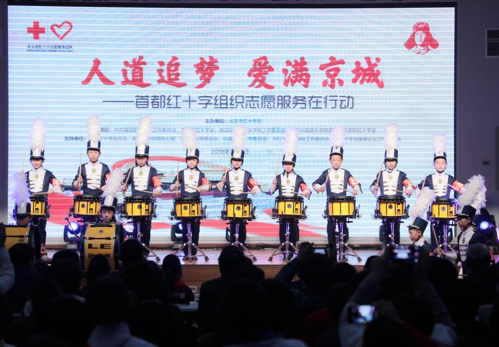 与以往不同的是,本次启动仪式充满青春的活力。开场时,首都红十字青少年会员代表们带来了激情澎湃、振奋人心的打击乐。小小志愿者们带来的情景剧“红十字会的诞生”寓教于乐,寓教于心。活动过程中,北外附校工委的领导和北外附校小学部红十字会小志愿者们分别用配乐诗朗诵和沙画展示“我们都是追梦人”的形式,诉说了首都红十字志愿者走进新时代、踏上新征程、争做新贡献的心声。在北外附校小学合唱队的带领下,全场齐唱“学习雷锋好榜样”,在激情澎湃、斗志昂扬的歌声中,整个活动现场热血沸腾,将启动仪式推向高潮。