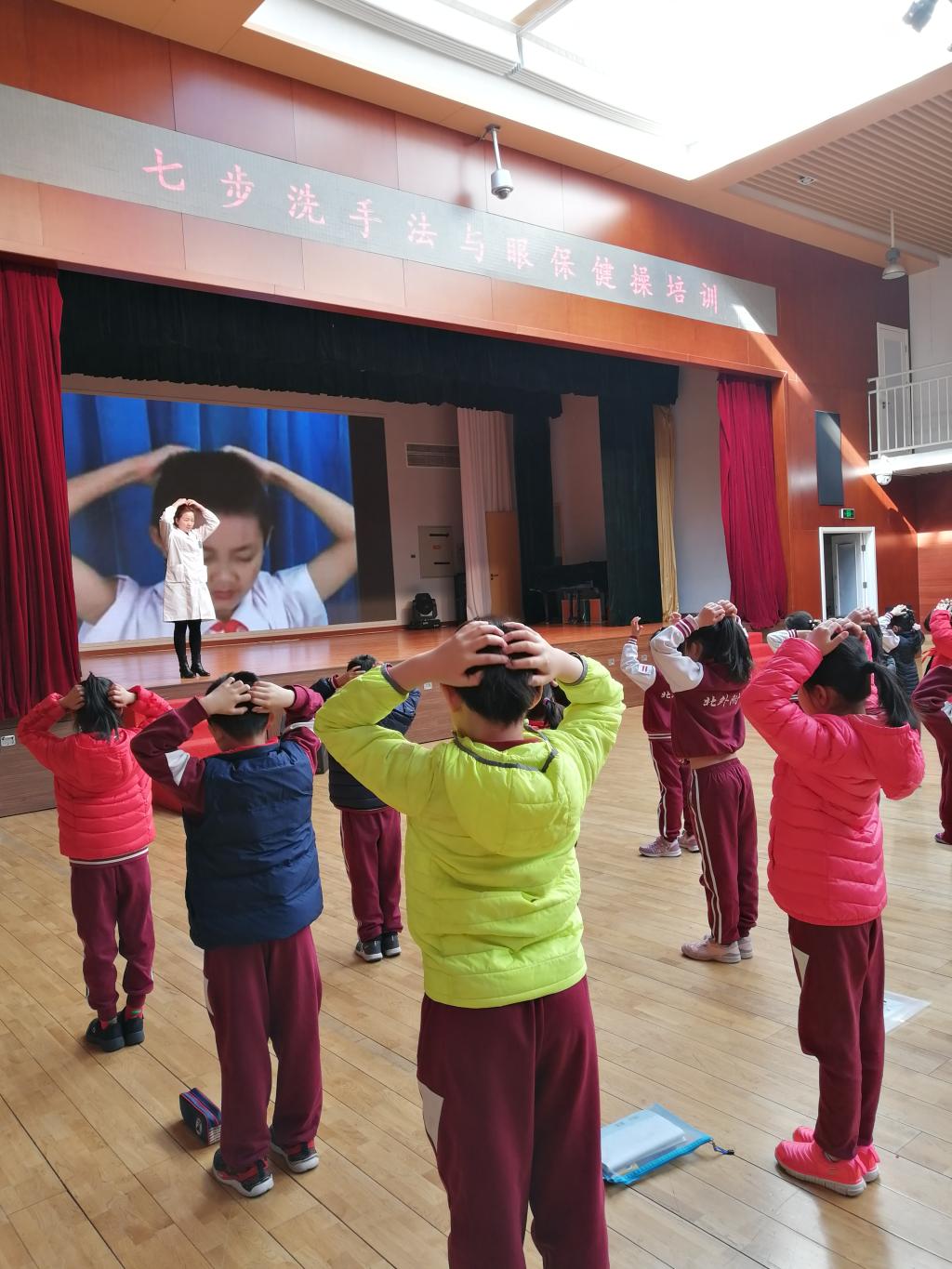 2019年3月7日,北外附校医务室利用大课间时间,在国瑞厅组织了一至六年级各班学生骨干,细致培训了“七步洗手法”和“眼保健操”。首先,校医为同学们详细讲解并示范“七步洗手法”的步骤和要求,现场带领学生们规范操作七步洗手。通过这次培训,同学们知晓洗手是预防疾病的重要方法和手段之一。小骨干们要起到对同学们的提醒、督促的模范带头作用。用七步洗手法洗手,并且把七步洗手法教给家人和身边的人,传播健康知识。